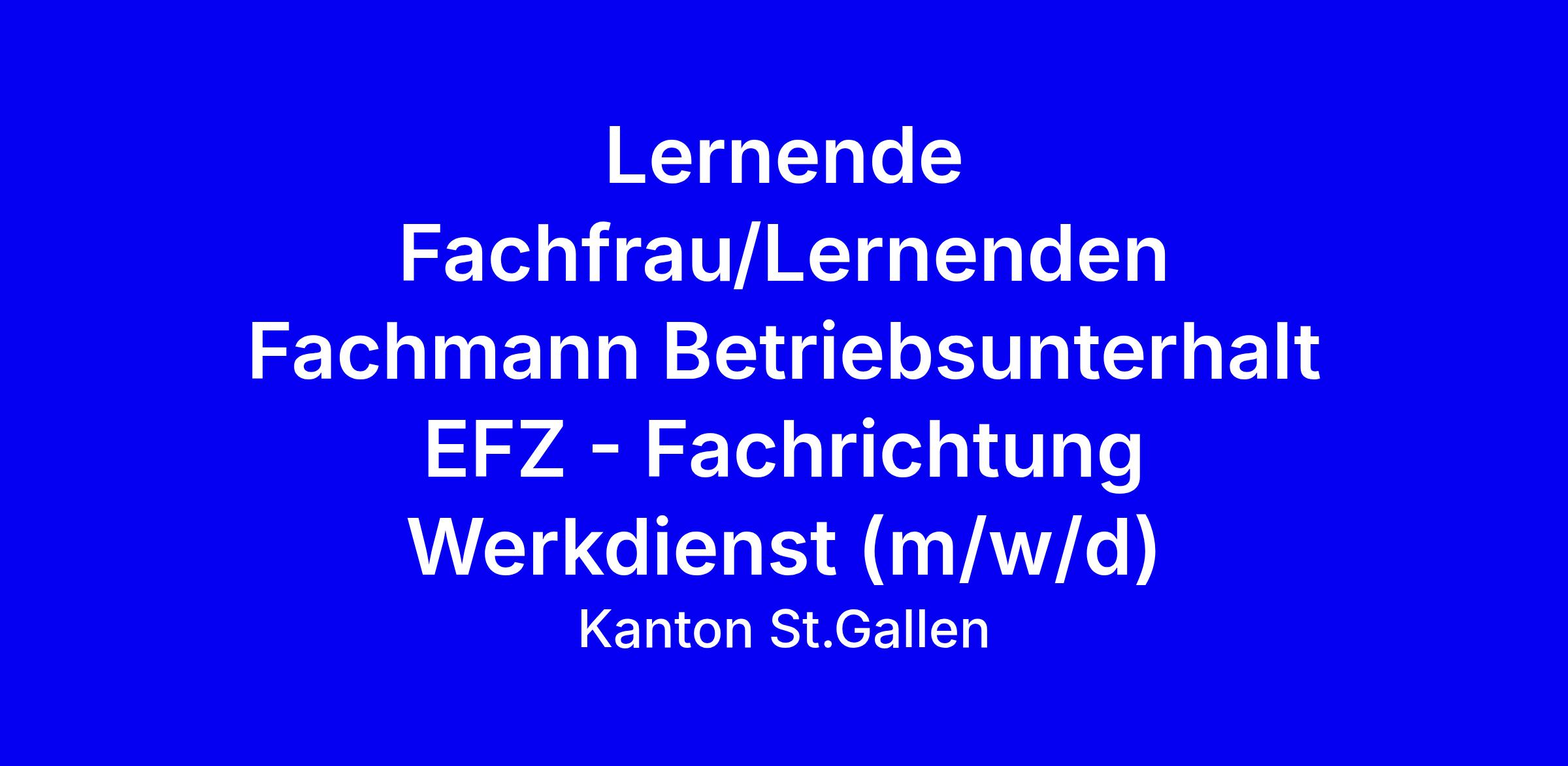 Diese Stellenausschreibung richtet sich an dich als Lernende Fachfrau/Lernenden Fachmann Betriebsunterhalt EFZ in Fachrichtung Werkdienst (m/w/d) mit Start August 2026 am Strassenkreisinspektorat Wattwil, Kantonsverwaltung St. Gallen. Du lernst den Unterhalt von Aussenbereichen, pflegst öffentliche Anlagen, wirkst bei Verkehrssignalisation, Markierungen und Pflästerungen mit und unterstützt Glatteisbekämpfung, Schneeräumung sowie Grün- und Gehölzunterhalt. Voraussetzungen: Abgeschlossene obligatorische Schulbildung, handwerkliches Geschick, praktisches technisches Verständnis, Freude an der Arbeit im Freien bei allen Wetterlagen, sowie Zuverlässigkeit und Verantwortungsbewusstsein. Pensum 100%, wir bieten dir eine vielseitige Ausbildung, fachliche Begleitung durch kompetente Berufsbildnerinnen und Berufsbildner und ein kollegiales Umfeld mit modernen Arbeitsplätzen. Wir freuen uns auf deine Bewerbung. Fragen Urs Göldi, Strassenkreisinspektor-Stv., 058 229 87 02.