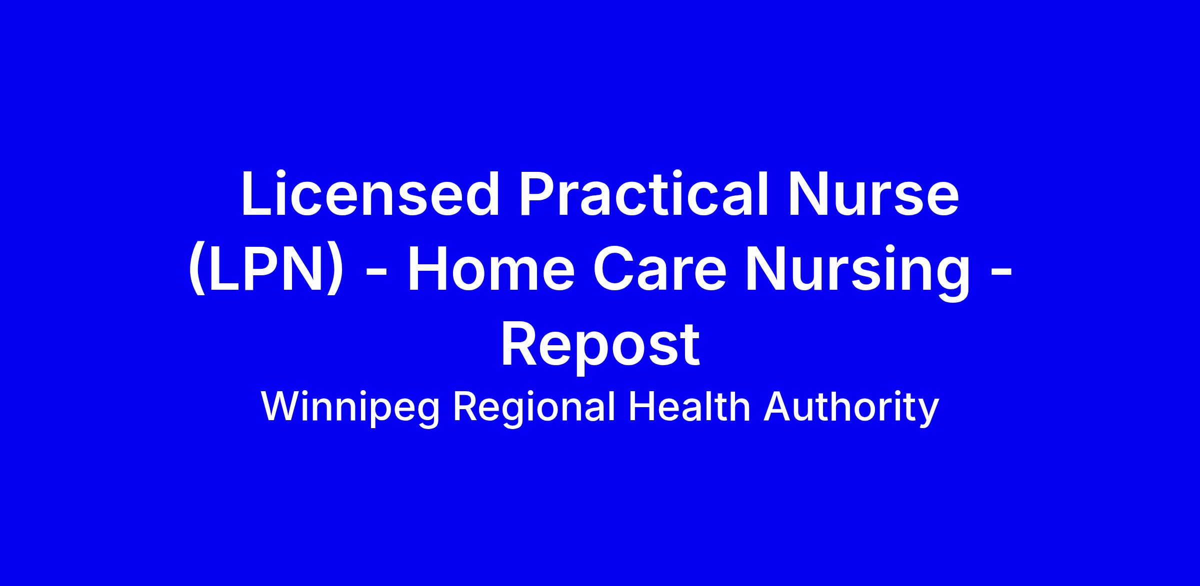 Under the general supervision of the Manager Health Services and while demonstrating a commitment to the mission, vision and values of the WRHA, the Licensed Practical Nurse (LPN) is responsible for providing professional practical nursing services to designated clients, including independent nursing services, administration of prescribed medical treatments, collaboration and interaction within the healthcare team and participation in the coordination of client care and discharge. These services may be provided in the home, school, place of business settings or at a home care nursing clinic.