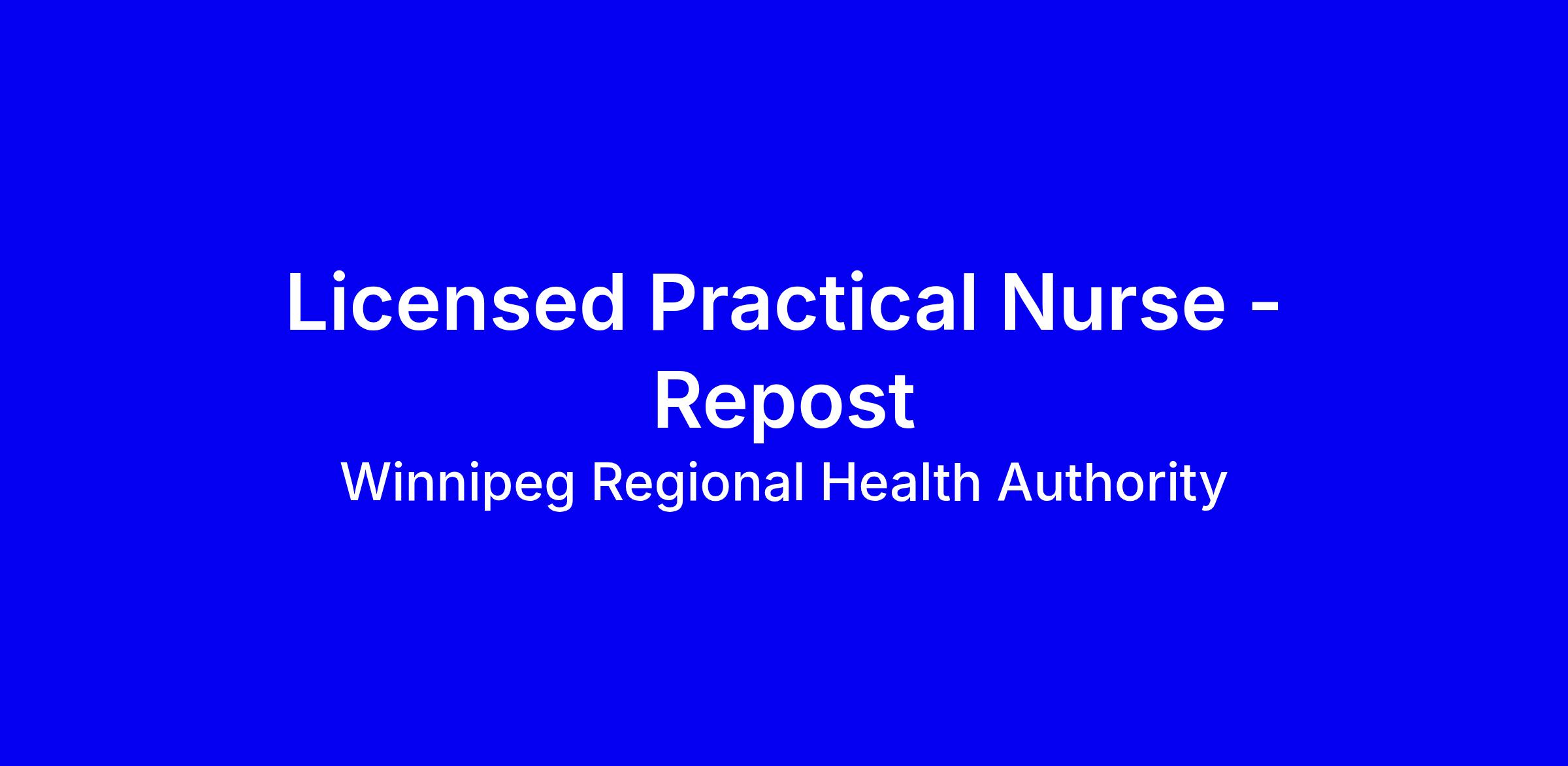 The Licensed Practical Nurse (LPN) applies the nursing process to support clients/residents/patients in achieving and maintaining their optimum level of health within a people‐centered care approach within Acute, Transitional, Personal Care Home (PCH), Primary Care, Public Health‐Healthy Living and/or Home Care. The LPN works to full scope of practice, engages in ongoing education and maintains competency congruent with Southern Health-Santé Sud policies, Professional Standards of Practice, College of Licensed Practical Nurse of Manitoba Code of Ethics, Competency Profile for Licensed Practical Nurses in Manitoba and the Regulated Health Professions Act.