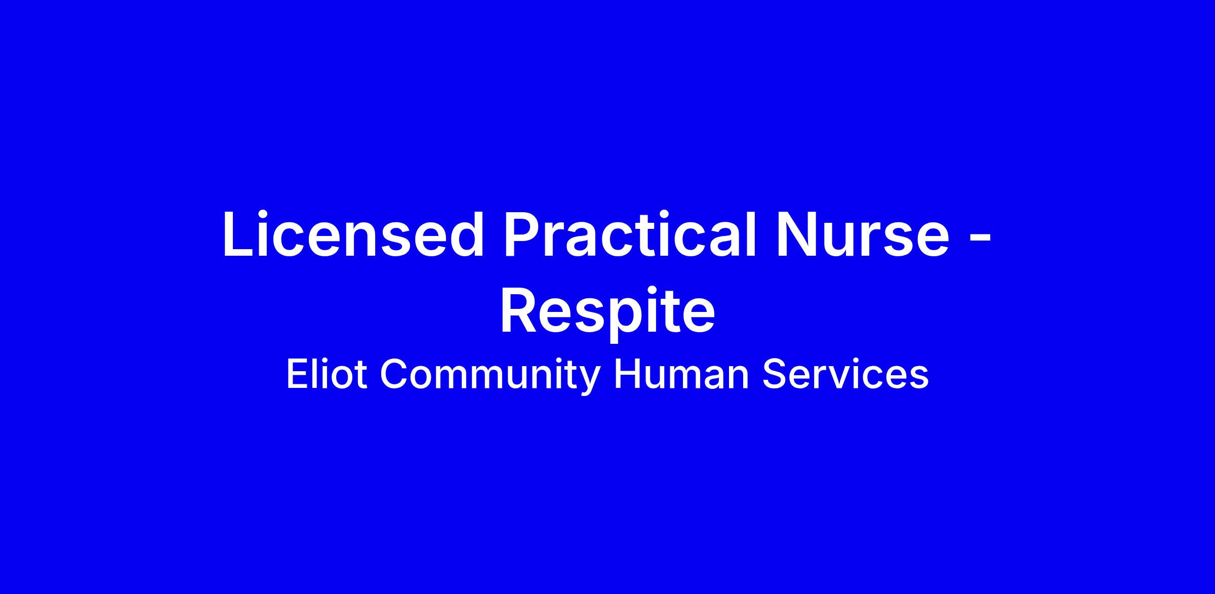 Eliot is seeking a dedicated Respite LPN to join our team. Eliot’s Respite program is a short term restorative service that assists adults with mental illness in obtaining and maintaining community living. As a Respite LPN, you will be responsible for providing oversight, guidance and assistance to clients in understanding their medical conditions; as well as performing direct medical care that is needed. Our ideal candidate will have the skills to establish supportive relationships, excellent communication, crisis management and problem solving skills.