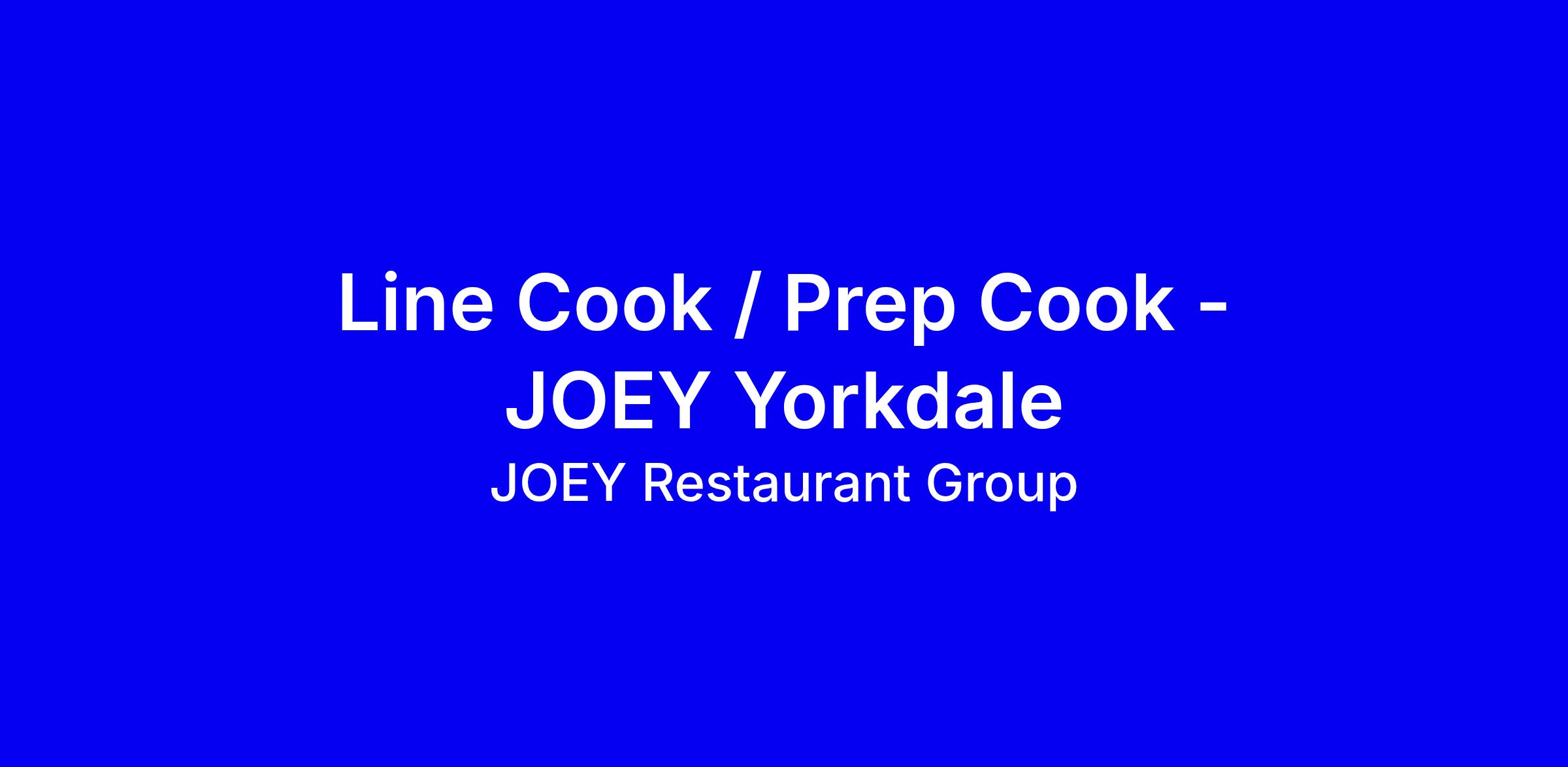 JOEY Yorkdale is hiring full-time Line Cook or Prep Cook onsite in Toronto. In this role you’ll deliver world-class culinary experiences with consistency and warmth, whether you’re running the line or prepping ingredients to keep the kitchen efficient. Requirements include 1-3+ years of culinary experience, a passion for food, a hunger to learn, and an entrepreneurial mindset. The wage is $18-$23 per hour plus an estimated tips share, with benefits like flexible scheduling, mentorship, meal and fitness discounts, and a strong team culture. To apply, tailor your resume to highlight relevant kitchen experience, show alignment with JOEY’s core values, and demonstrate you can contribute to a fast, collaborative environment while signaling your readiness to grow.