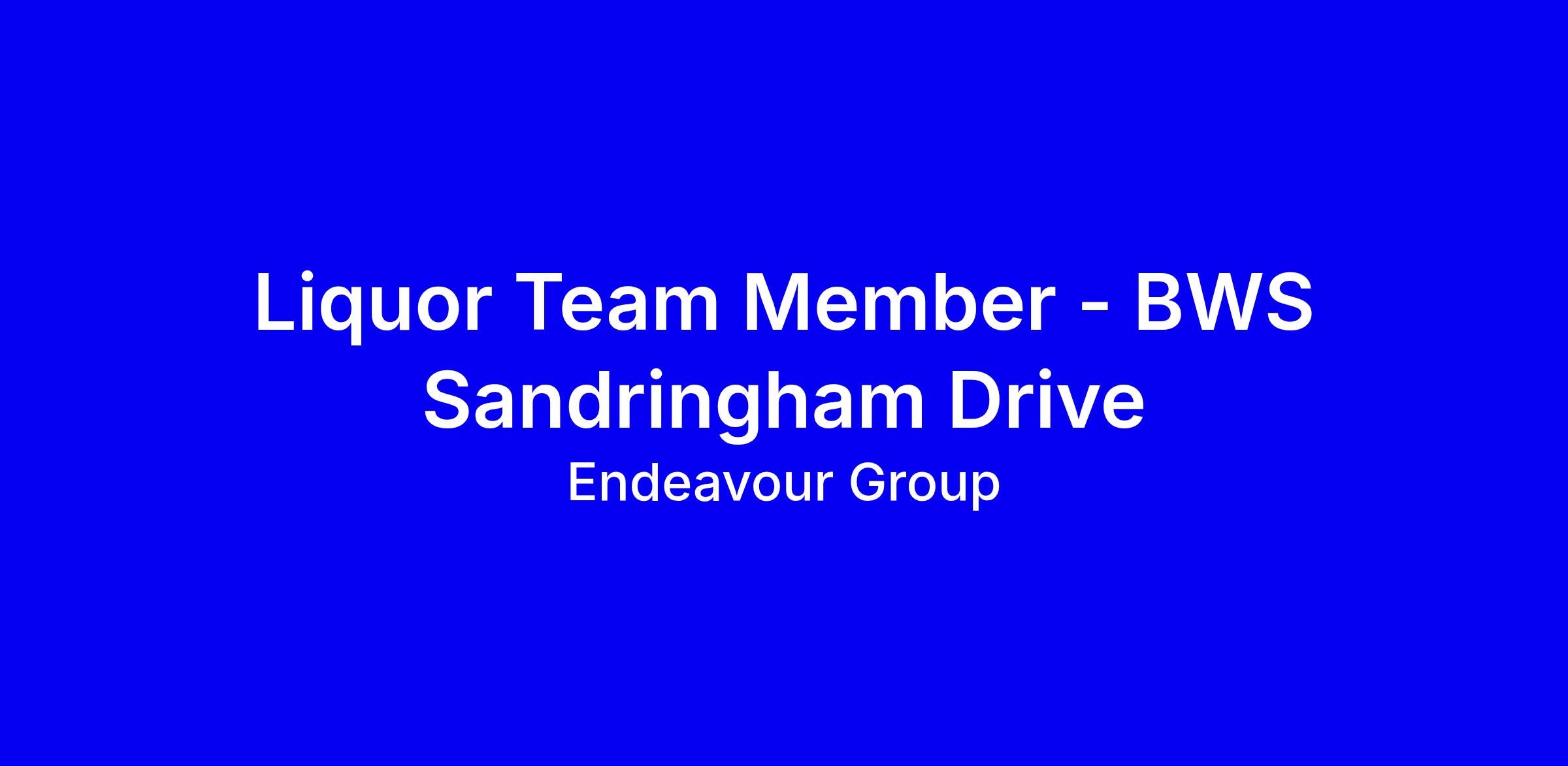 Liquor Team Member at BWS Sandringham Drive in the Endeavour Group is a full‑time onsite role helping customers enjoy Beer, Wine, Spirits and zero alc options while growing with a nationwide network of stores. You’ll actively engage customers, promote BWS loyalty benefits, keep shelves stocked, maintain a safe, clean environment, and uphold responsible service of alcohol, all while being your authentic self. The right candidate communicates confidently, is available across days, evenings and weekends, can work autonomously or in a team, and loves learning about products with an eye to a long term career. Perks include staff discounts and wellbeing support; prepare for a functional screening assessment and tailor your application to highlight hospitality experience and RSA compliance.