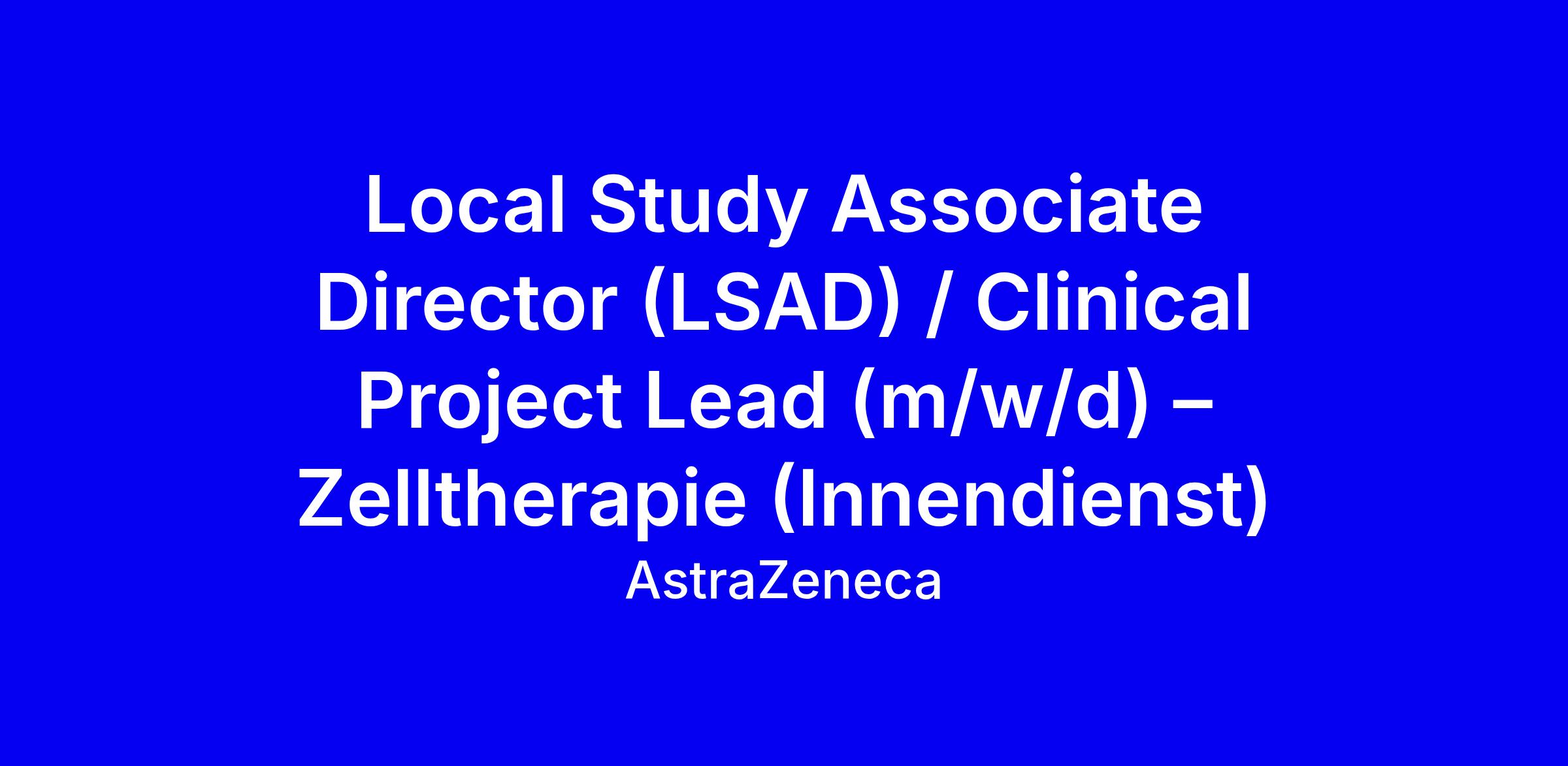 Local Study Associate Director (LSAD) / Clinical Project Lead (m/w/d) – Zelltherapie (Innendienst)
