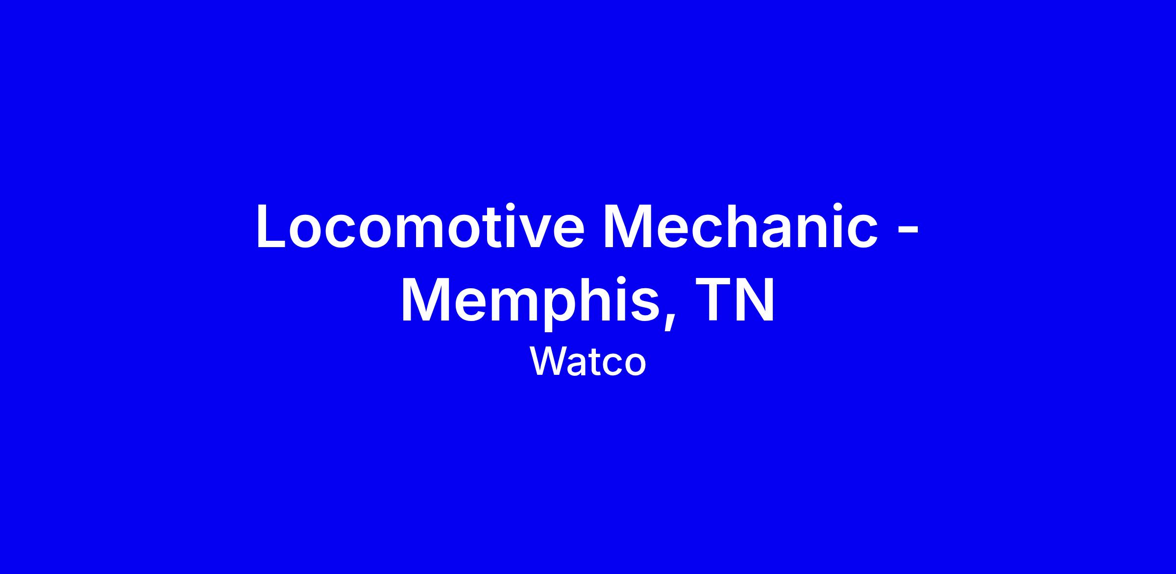 Watco is seeking a full-time Locomotive Mechanic in Memphis to inspect, repair, and maintain locomotives in line with company policies and FRA regulations, with paid on-the-job training and access to Watco University. You’ll dismantle and repair using hoists, cranes, hand and power tools, perform air brake tests and main bearing checks, manage preventative maintenance, and complete FRA reports. The role may require becoming a qualified FRA Service Engineer and earning a Class B CDL, plus possible eligibility for a three-year Railroad Apprenticeship. A HS diploma or GED is required. How to apply: highlight hands-on locomotive maintenance, safe operation and documentation experience, relevant tool experience, a proven safety record, and a clear interest in career advancement and the One Watco culture.