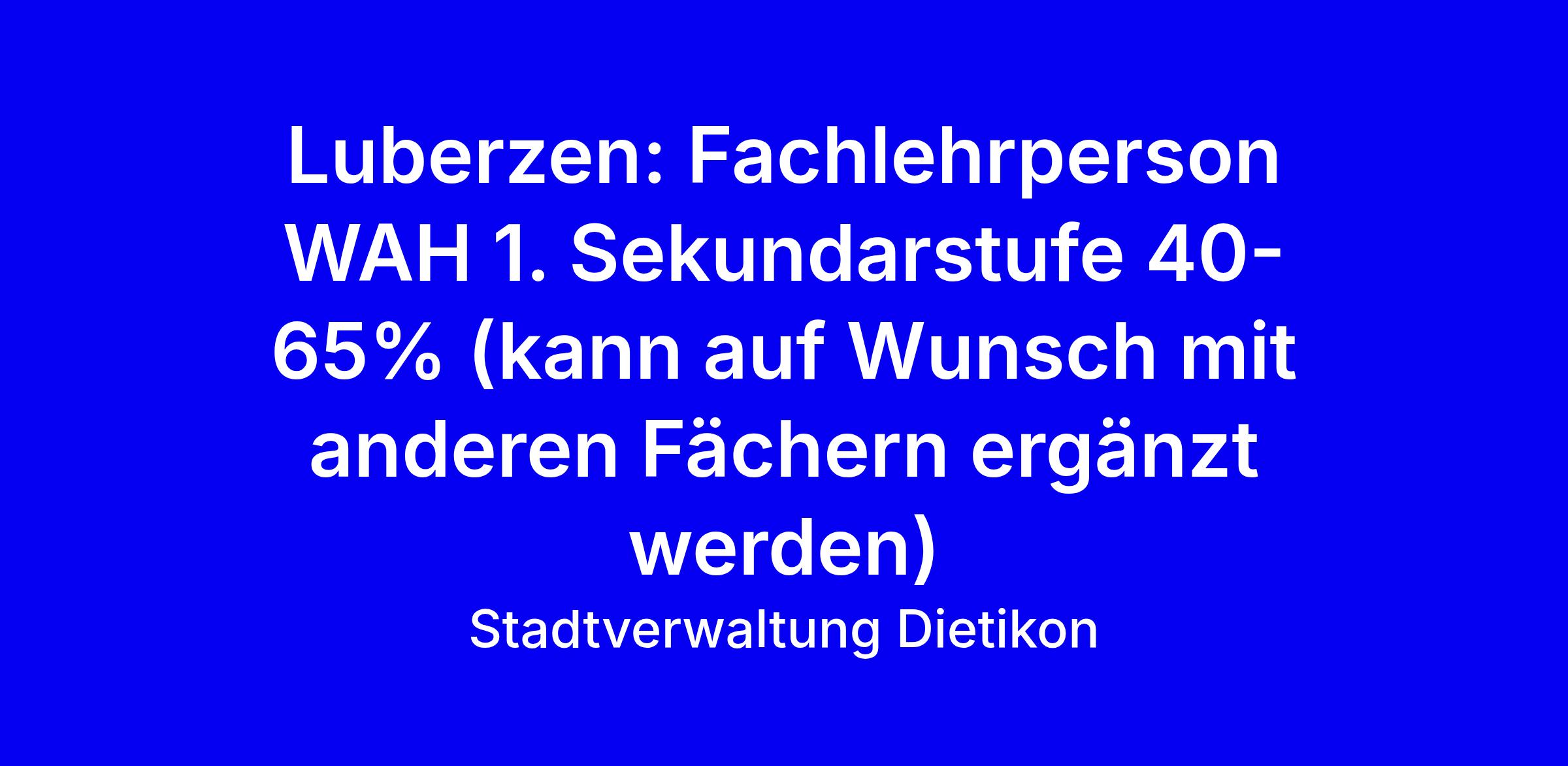 Luberzen: Fachlehrperson WAH 1. Sekundarstufe 40-65% (kann auf Wunsch mit anderen Fächern ergänzt werden)
