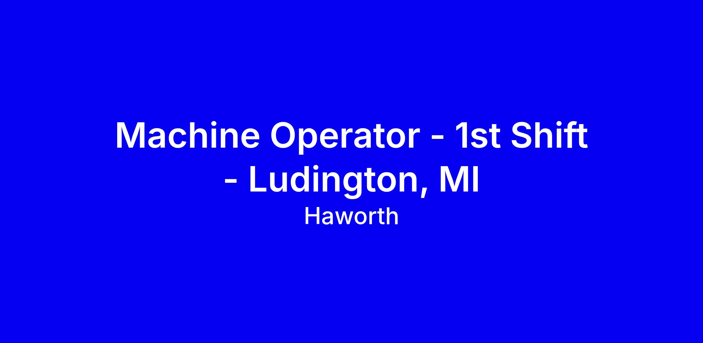 Haworth is hiring a Machine Operator for the 1st shift in Ludington, MI, full time on site. The role involves setting up and operating production machinery, performing change-overs, verifying parts against tickets, and monitoring material flow; overtime including weekends or holidays may be required. Requirements include two years of manufacturing experience or a certified machine operator credential, the ability to obtain and maintain powered industrial truck certification, lifting up to 50 pounds, and legal work authorization in the United States without sponsorship. Local candidates preferred; blueprint reading and prior operator experience are a plus. Apply with a focused resume and a brief note on shift availability and fit with Haworth values.