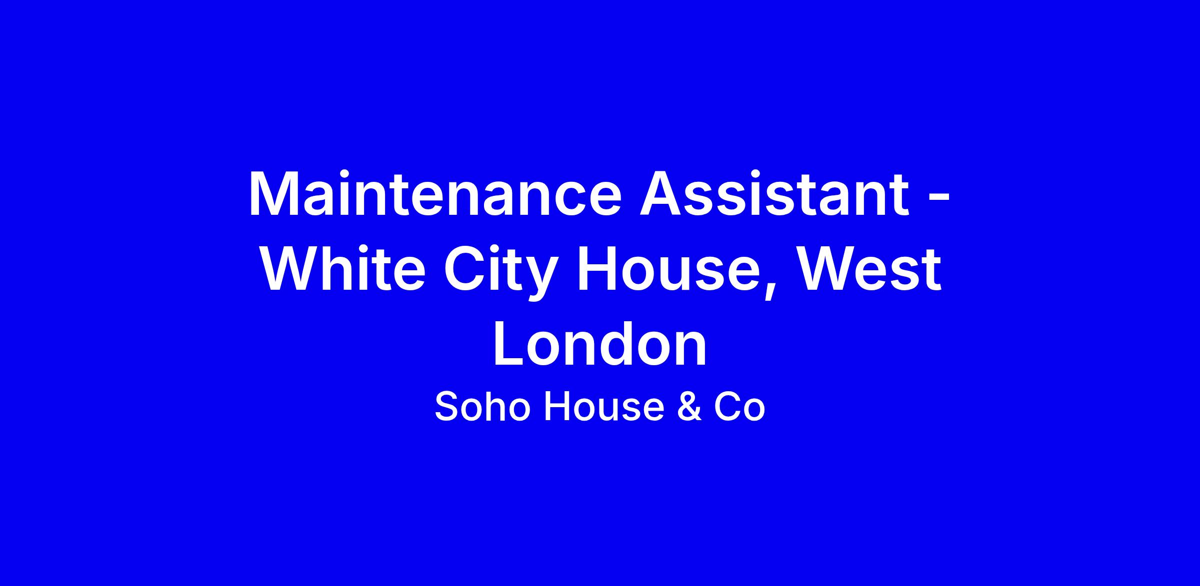 Soho House & Co is seeking a Maintenance Assistant for White City House in West London on a full-time onsite basis. You’ll support the Maintenance Supervisor and Facilities team to keep the club safe and functional, handling minor repairs such as painting, basic plumbing, lighting, furniture assembly, and room setups, while assisting with planned preventative maintenance. The ideal candidate has two years’ experience in a busy venue, enjoys working with a team, uses tools confidently, and delivers service. When applying, emphasize reliability, flexibility, a service mindset, and examples of completing tasks safely and efficiently, and tailor your CV to show relevant maintenance tasks and any trades qualifications.