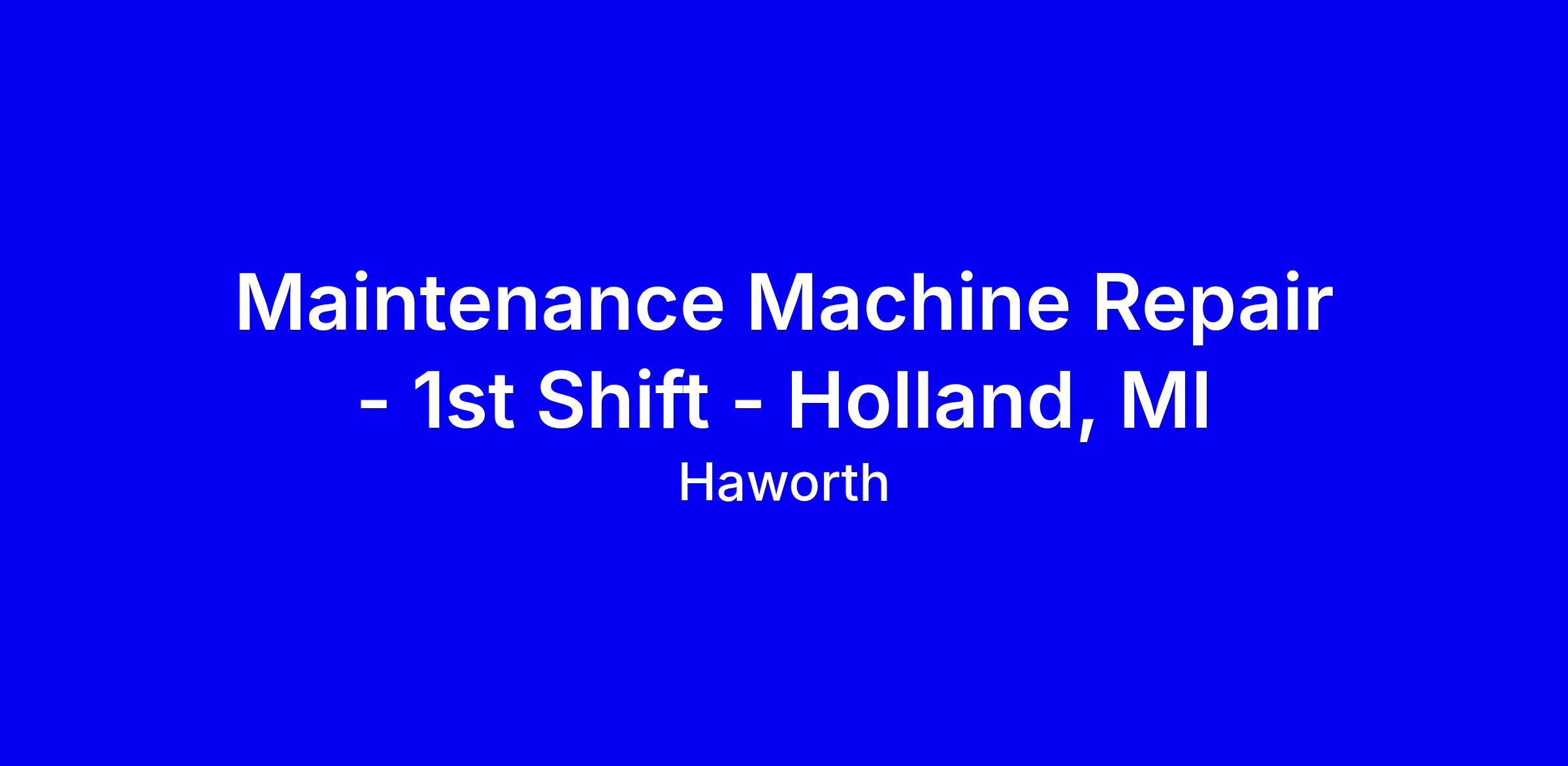 Haworth seeks a skilled Maintenance Machine Repair technician for 1st shift in Holland MI. You will perform routine and emergency maintenance on complex machinery, diagnose problems, and lead major installations while mentoring apprentices. The role requires an apprentice program certificate or equivalent, journeyman preferred, and the ability to obtain powered industrial truck certification and a driver license, plus willingness to work overtime. Blueprints reading and a grounding in Lock-Out Tag-Out, electrical safety, cranes, fall protection and confined space are valued. Pay up to $37/hr with benefits. Tips: tailor your resume to highlight PM experience, leadership, and hands-on fabrication; specify your shift and certifications. Applicants will be considered only for the shift selected.
