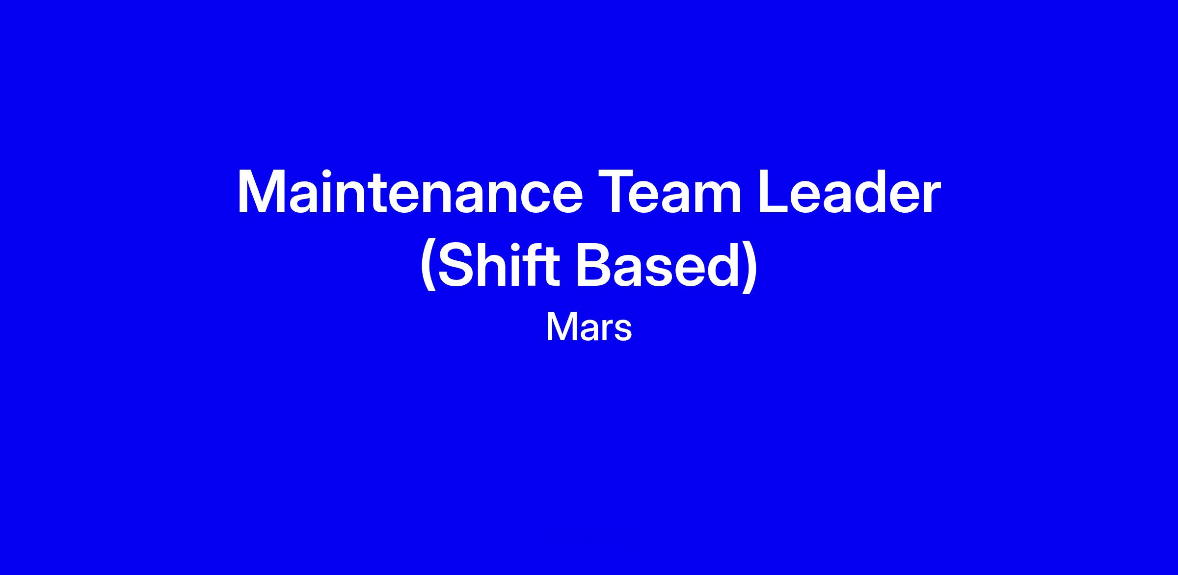 Maintenance Team Leader (Shift Based)