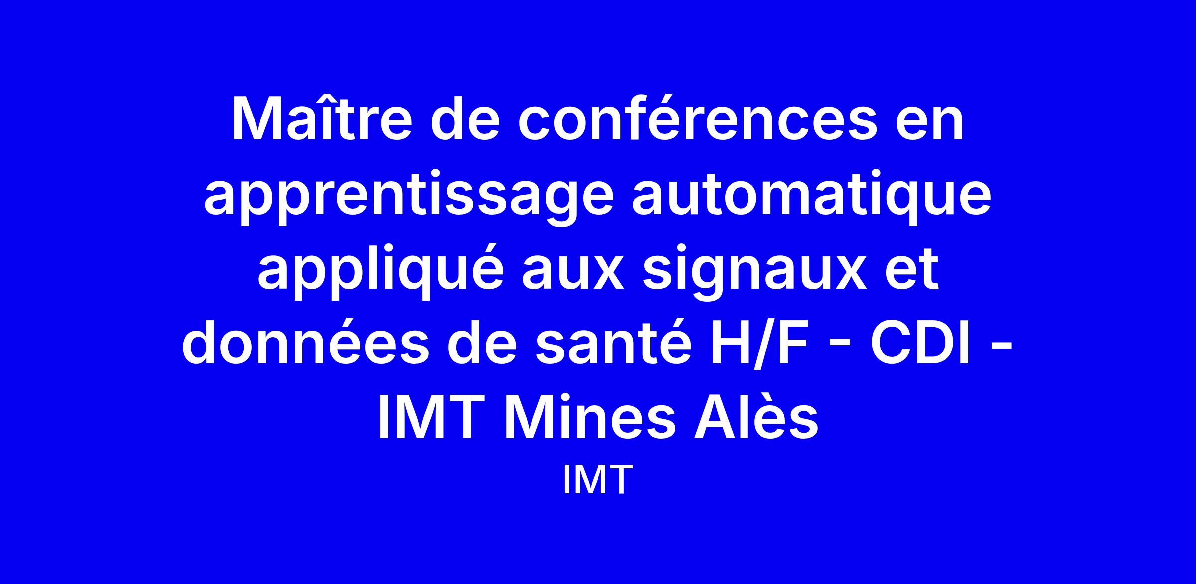 IMT Mines Alès recherche un maître de conférences en apprentissage automatique appliqué aux signaux et données de santé, CDI, rattaché au CERIS et à l’équipe EuroMov DHM. Le candidat devra être titulaire d’un doctorat en informatique, mathématiques appliquées ou traitement du signal, et justifier d’une expérience solide d’enseignement et de recherche en IA et biosignaux. Il coordonnera des UE du département 2IA et participera à des enseignements en anglais selon des approches actives, tout en publiant dans des revues et conférences internationales et en développant des partenariats académiques et industriels, y compris des projets de valorisation et des chaires industrielles. Pour postuler, préparez un CV ciblé, 10 pages max, et dossiers de candidature avant le 01/03/2026.