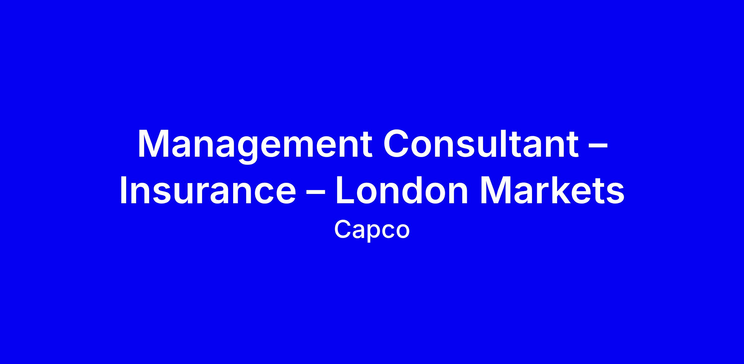 Management Consultant – Insurance – London Markets