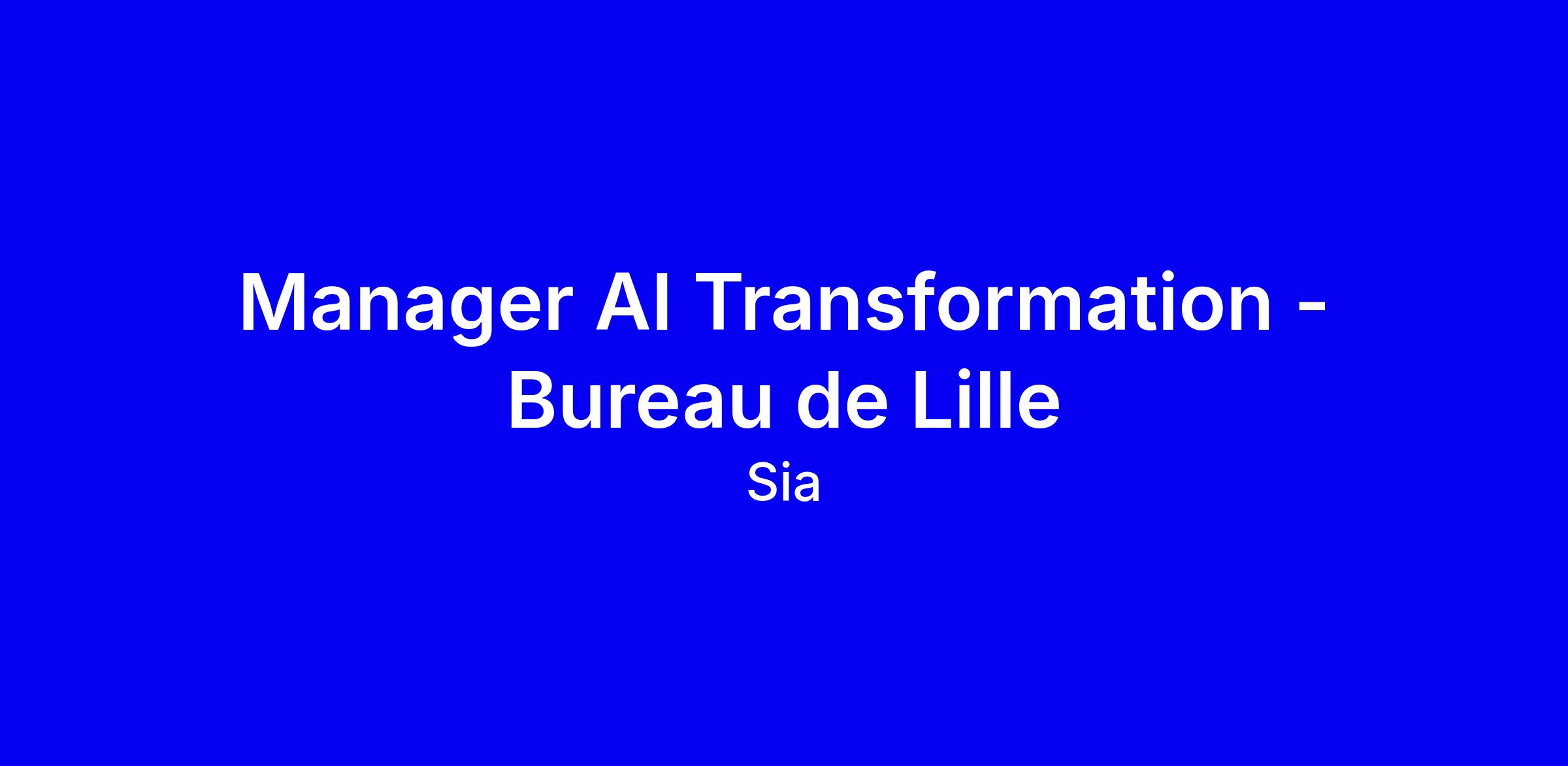 Manager AI Transformation Lille, poste 100 % sur site, au sein de la Business Unit Technology Advantage de Sia. Vous éclairerez les clients sur l’IT, l’IA et la data, cadrerez et accélérerez les transformations, définirez des feuilles de route IA et une gouvernance responsable, et accompagnerez la mise en œuvre de cas d’usage IA tout en pilotant le changement et l’adoption par les métiers. Le rôle inclut aussi l’encadrement d’équipes, le développement d’offres et la participation à des initiatives internes et externes. Pour postuler, mettez en avant au moins 5 années d’expérience en conseil ou en directions Data IA, vos réalisations mesurables, votre leadership et votre capacité à travailler en équipe pluridisciplinaire, et adaptez votre dossier à Lille et à l’esprit Sia.