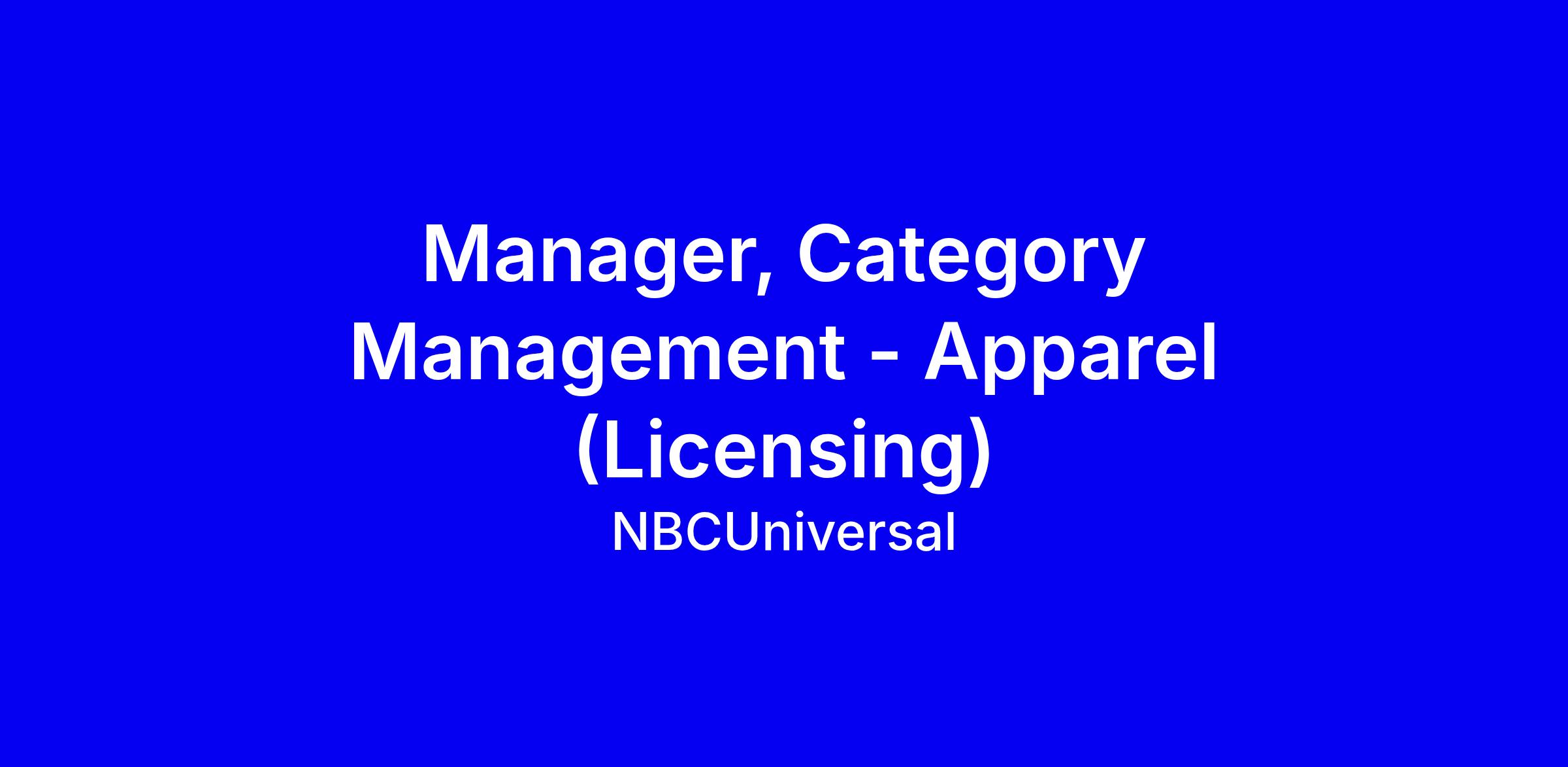 NBCUniversal seeks a Manager, Category Management for Apparel Licensing to own category strategy, licensee relationships, and growth in fashion licensing. The role requires 5+ years in licensing with a fashion focus, strong deal negotiation and contract management, and the ability to design category plans by property for key retailers. You will oversee budgets and quarterly revenue forecasts, onboard new licensees, and partner with Retail Sales, Product Development, Marketing, and Franchise teams to drive cross category opportunities with UP&E properties. Essential skills include excellent communication, presentation, Excel pivot proficiency, and PowerPoint or Keynote. Apply with quantified wins and a clear cross functional impact, noting hybrid work and travel.