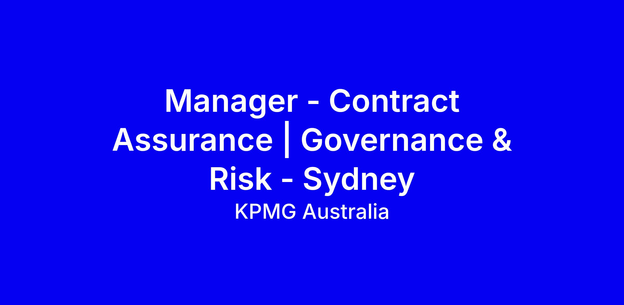 KPMG Australia is hiring a Sydney based Manager for Contract Assurance & Performance in Governance & Risk. You will lead complex commercial contracts, partner with clients to extract value, apply audit and consulting expertise to spot non compliance, design governance frameworks, and develop automation tools such as our KymContracts platform while mentoring juniors and collaborating with national and global experts. The ideal candidate has a strong background in audit or consulting, proven stakeholder influence, and contract management experience; CA/CPA credentials are desirable and we offer study support. To apply, tailor your CV to showcase leadership in contract management, measurable outcomes, client storytelling, and your ability to engage C‑suite.