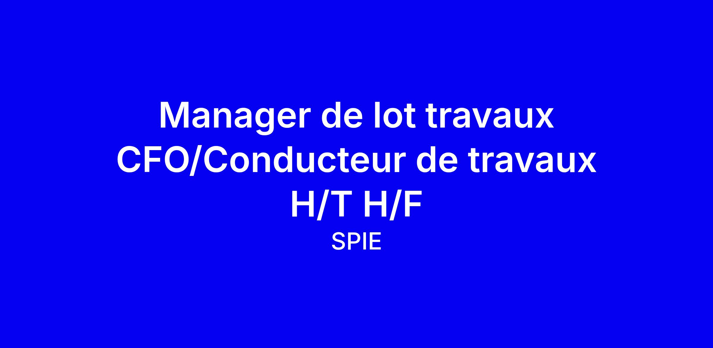Manager de lot travaux CFO/Conducteur de travaux H/T H/F