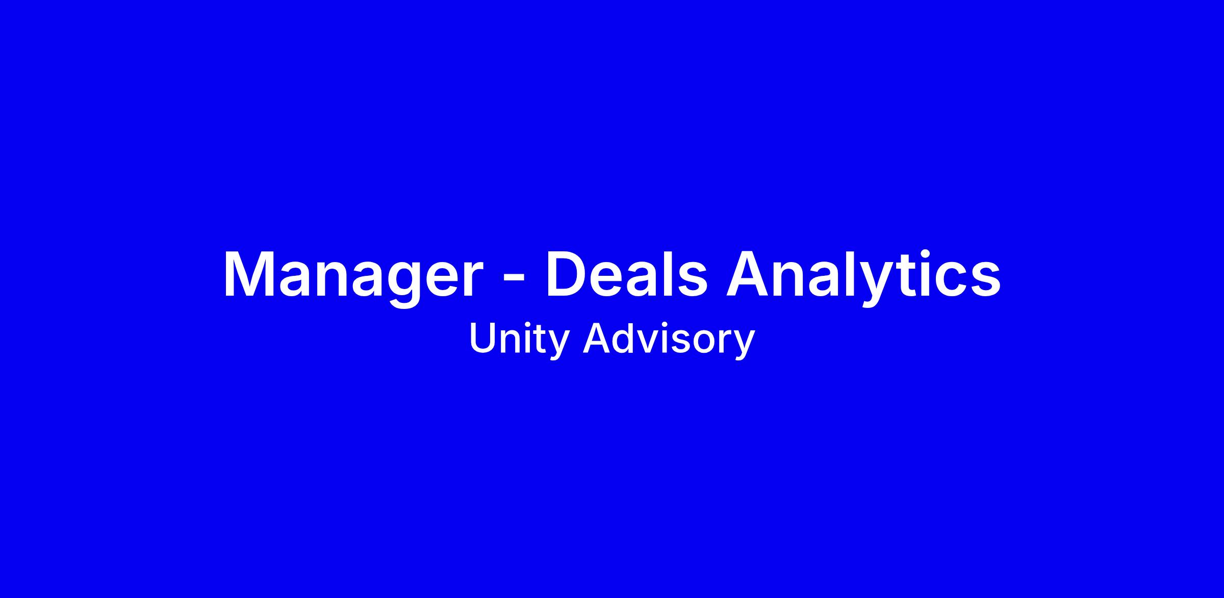 We are now looking for a Manager – Deals Analytics to join our growing team.