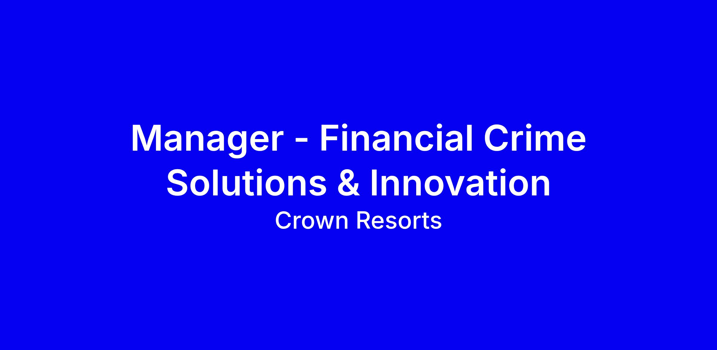 We are currently looking for a Manager, FC Solutions & Innovation to join our Financial Crime (FC) Solutions team. This is a key role responsible for driving the execution of data analytics and technology initiatives that enhance our financial crime capability across Crown’s operations.