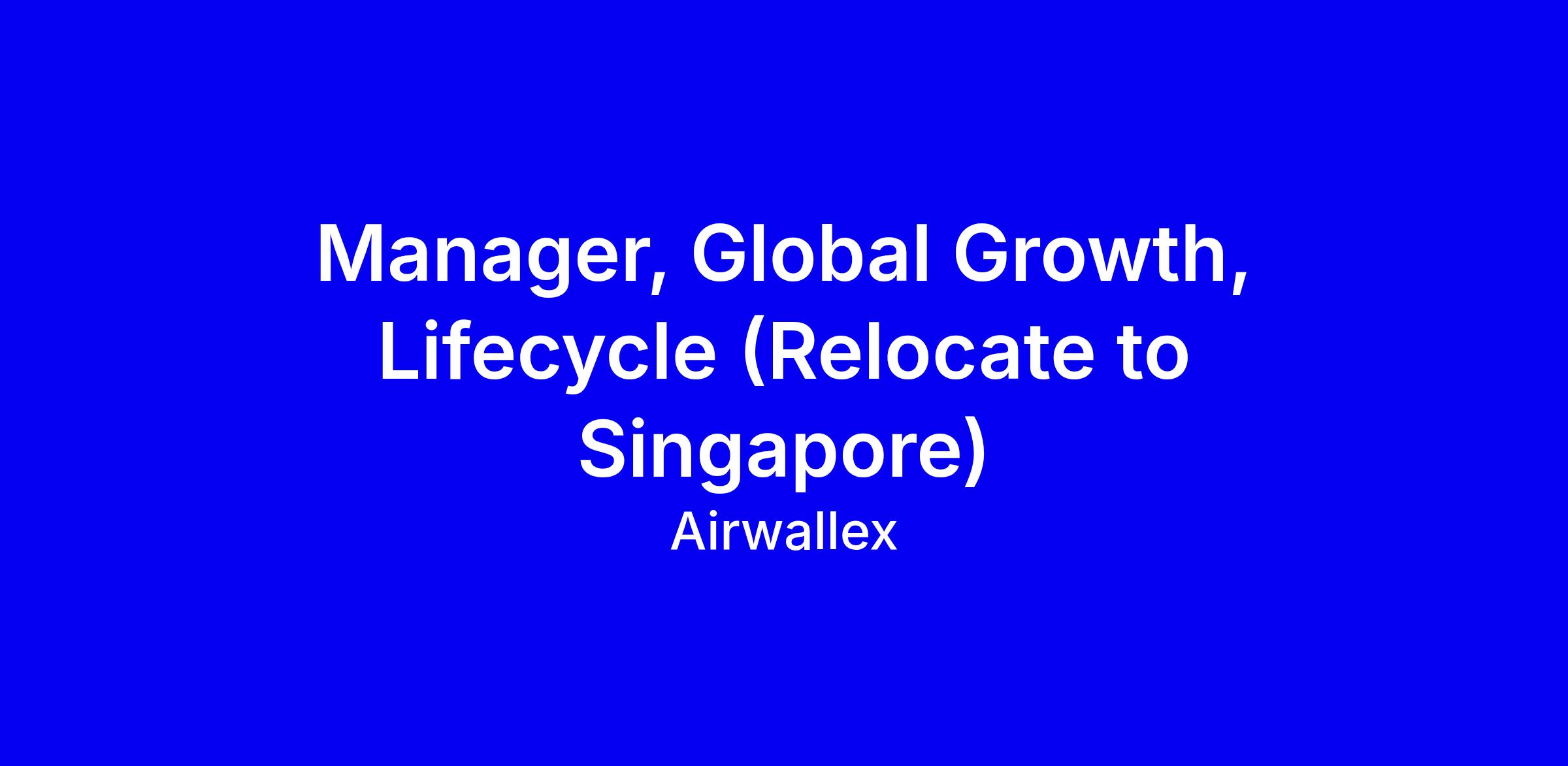 Airwallex is seeking a Manager, Global Growth, Lifecycle who will relocate to Singapore to own the evolution of customer engagement in key regions, designing end-to-end lifecycle journeys and unifying global frameworks with local market nuance. You’ll lead regional digital channels such as email, push and in-app messaging, translate strategic lifecycle concepts into high-performing programs, and own end-to-end growth metrics with a data driven, experimentation mindset. The ideal candidate has 7+ years in growth across the lifecycle, strong analytics, hands on CRM experience, and experience in fintech or B2B SaaS is a plus. Apply with concrete regional impact stories, measurable outcomes, and a demonstration of collaboration with cross-functional partners, and show alignment with Airwallex operating principles.