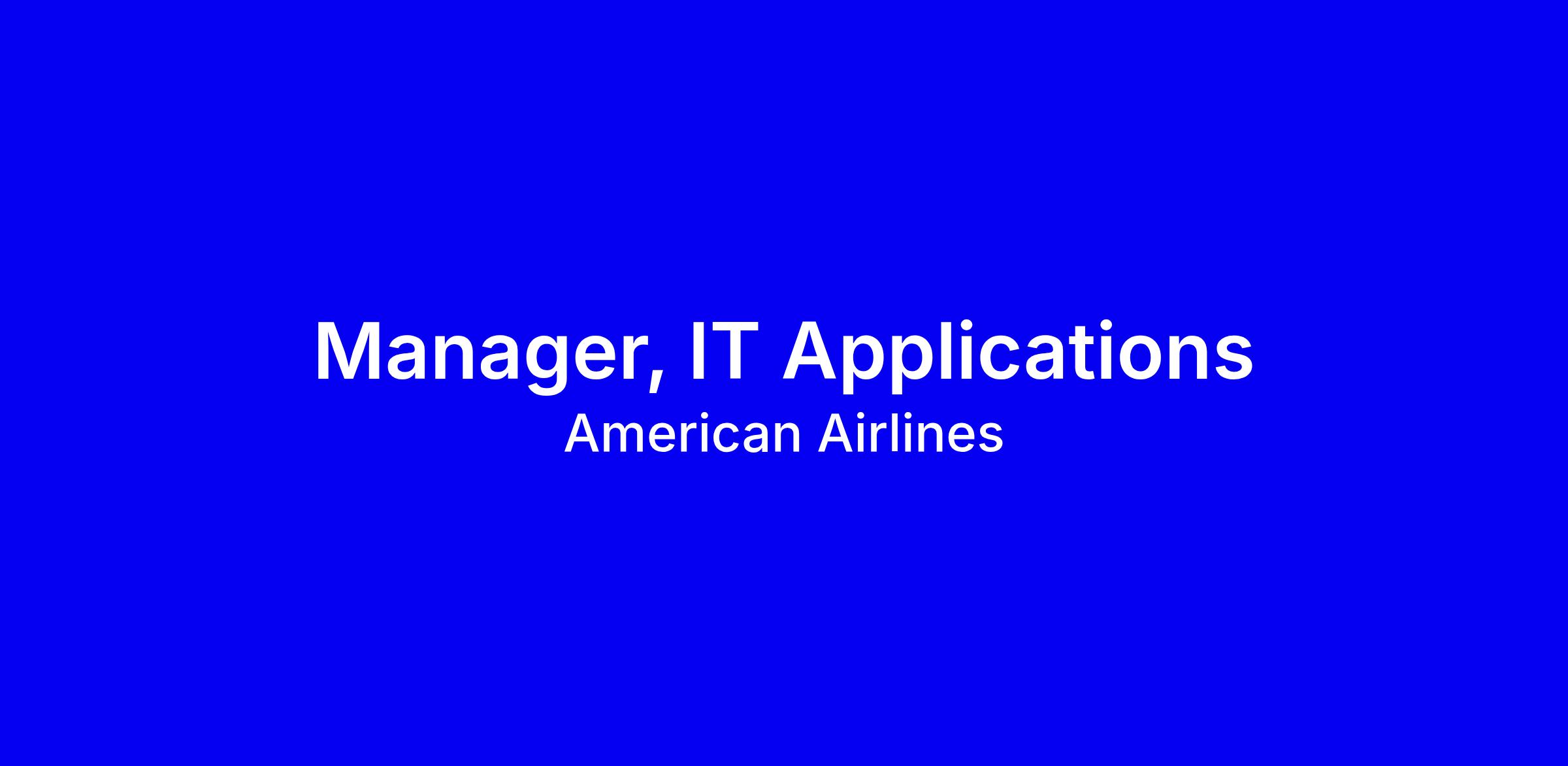 American Airlines is seeking a Manager, IT Applications to lead agile delivery of platform solutions onsite in Fort Worth. You will partner with business and IT leadership to set vision, remove roadblocks, and cultivate self-governing delivery teams that meet time, quality and customer expectations. You’ll manage schedules and budgets, guide adoption of emerging technologies, mentor a diverse, high-performing team, and coordinate production support across stakeholders. Ideal candidates have 5 years in ITIL or Agile deliveries, 3 years leading teams, and experience navigating complex environments, ideally in airlines. To apply, tailor your resume to show roadmap delivery, cross functional influence, measurable outcomes, and readiness for travel and extended hours as needed.