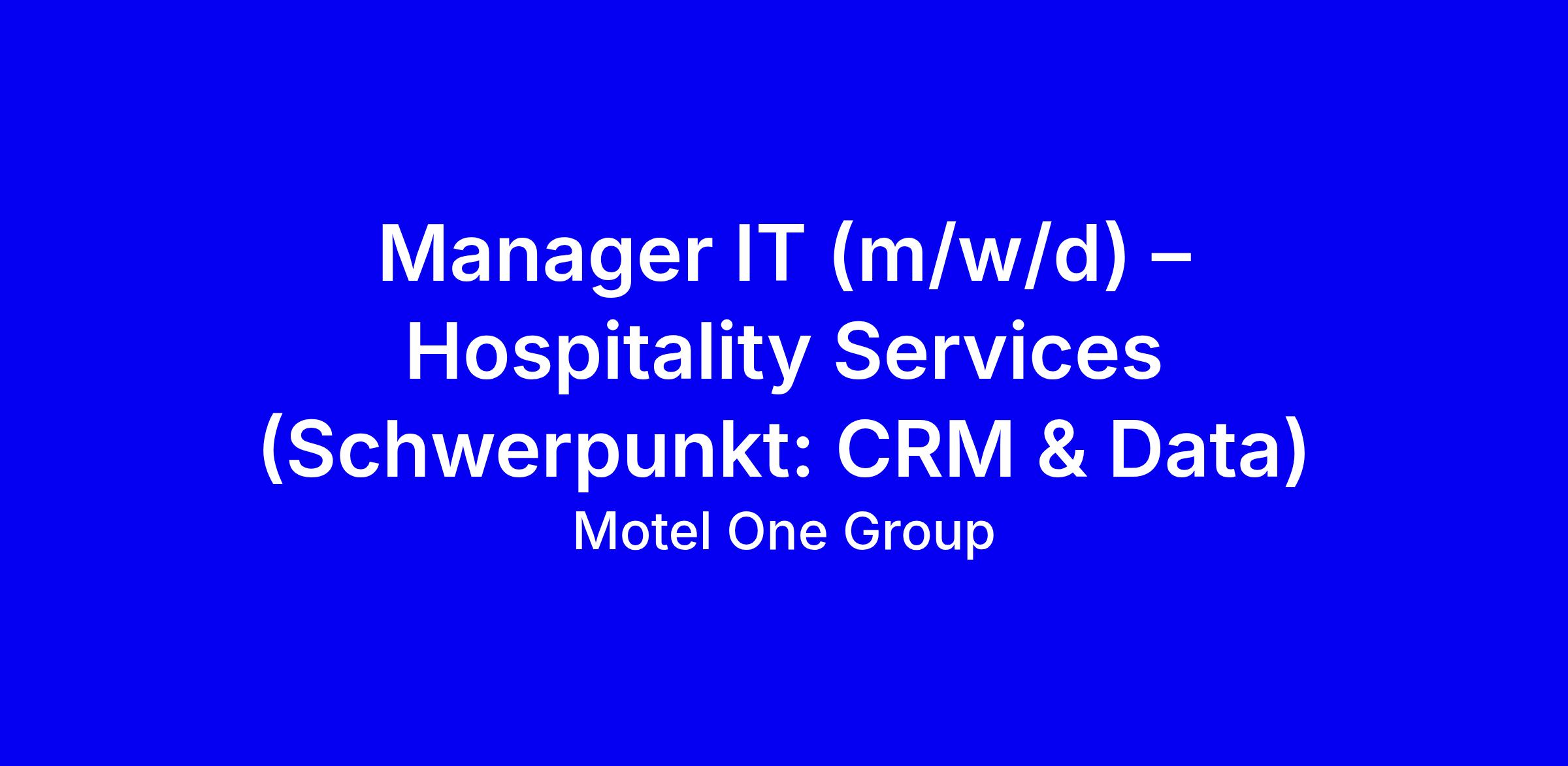 Als Manager IT (m/w/d) – Hospitality Services (Schwerpunkt: CRM & Data) verantwortest du mit unternehmerischem Denken und Hands-on-Mentalität die Umsetzung digitaler Innovationen in einer internationalen Hospitality-Plattform.