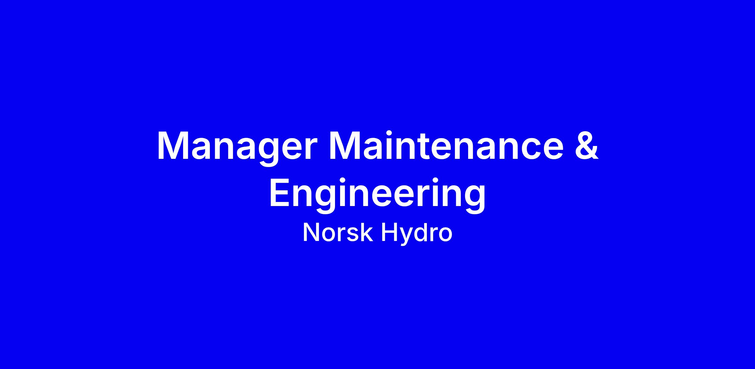 Vacature: Manager Maintenance & Engineering