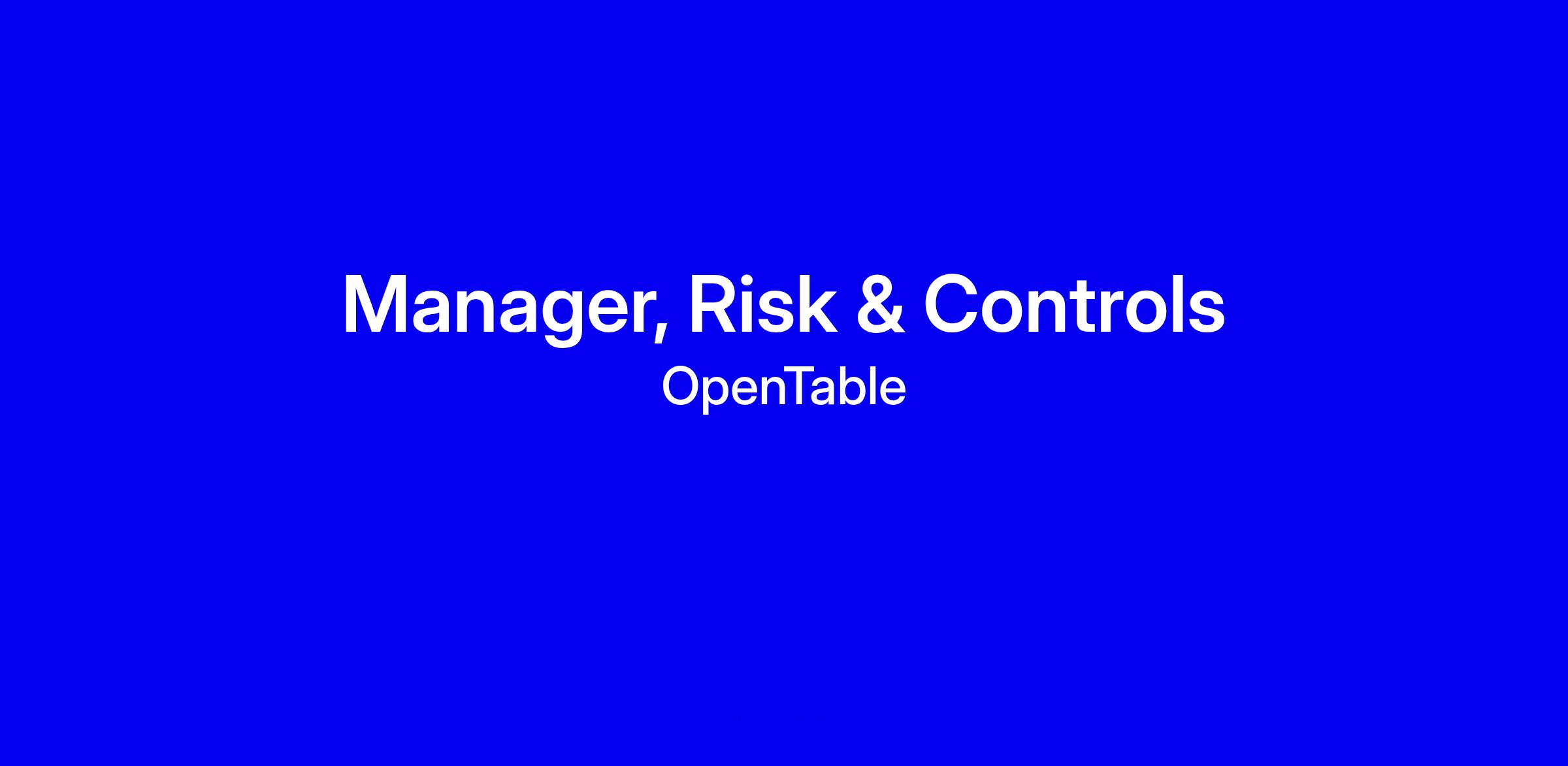 OpenTable’s Finance team is hiring a Manager, Risk & Controls!