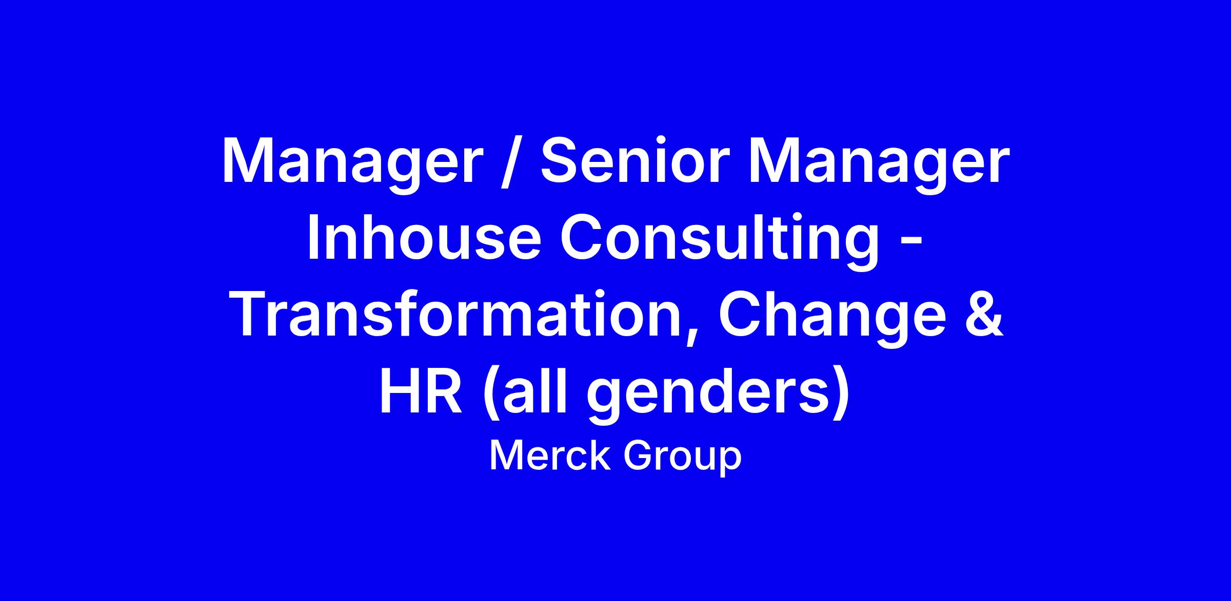 Merck Group is hiring for Manager or Senior Manager Inhouse Consulting focused on transformation, change and HR. Join an internal consultancy of about 75 professionals delivering cross-functional projects across Healthcare, Life Science and Electronics, with Darmstadt as HQ and a hybrid culture. You will own projects from proposal to steering committee and typically transition to your next role in 2 to 4 years, while shaping organizational and digital transformations, people strategy and data and AI initiatives. The role calls for 2 to 5 years in management consulting, fluent English (German preferred) and willingness to relocate to the Rhine-Main area 2 to 3 days per week. To apply, tailor your CV to show transformation outcomes, HR and AI projects, leadership across levels, stakeholder management, and alignment with Merck’s inclusive, impact-driven culture.