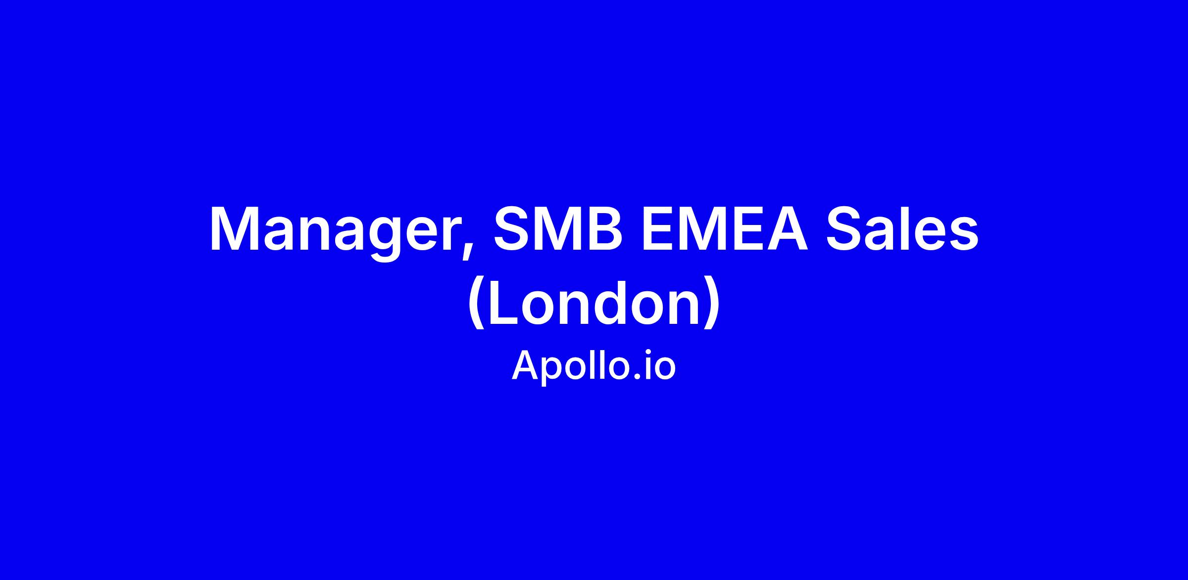Apollo.io seeks an SMB Sales Manager in London to lead a 6+ person SMB team, drive revenue growth in a data driven environment, and own an EMEA portfolio in a hybrid AI native company. You will shape sales strategy, coach and develop talent, build playbooks, and collaborate with Product, Engineering, Marketing, Customer Success, Onboarding and Legal to optimize the client experience and scale programs. Qualifications include 4+ years leading sales teams, 3+ years in management, quota attainment above 90% of the team rollup, excellent communication, and the ability to be in the London office three days a week. To apply, tailor your resume to highlight leadership impact, SMB/EMEA experience, and comfort navigating ambiguity.