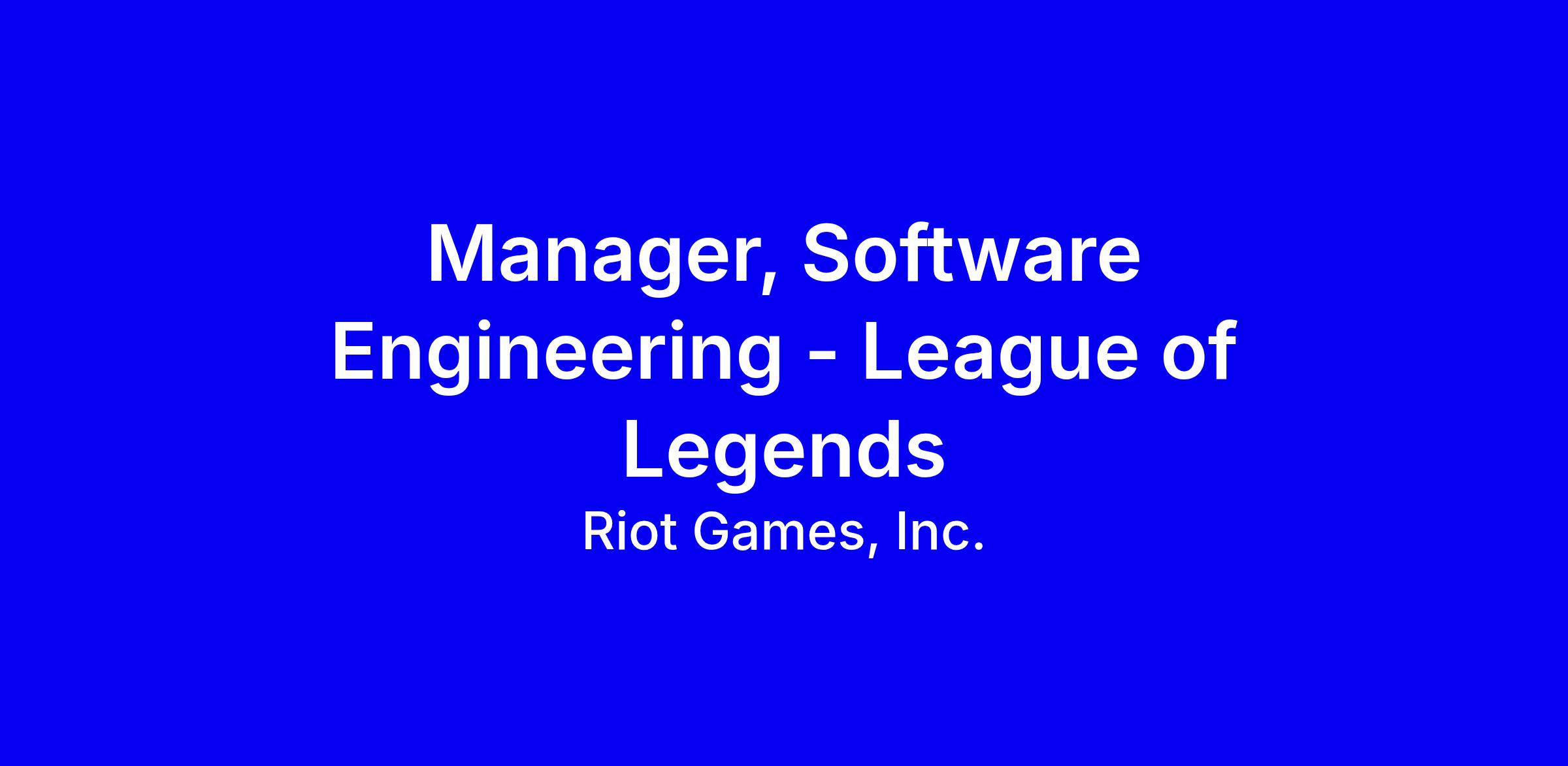 Riot Sydney is looking for an experienced Manager, Software Engineering to join the Sydney-based League team.