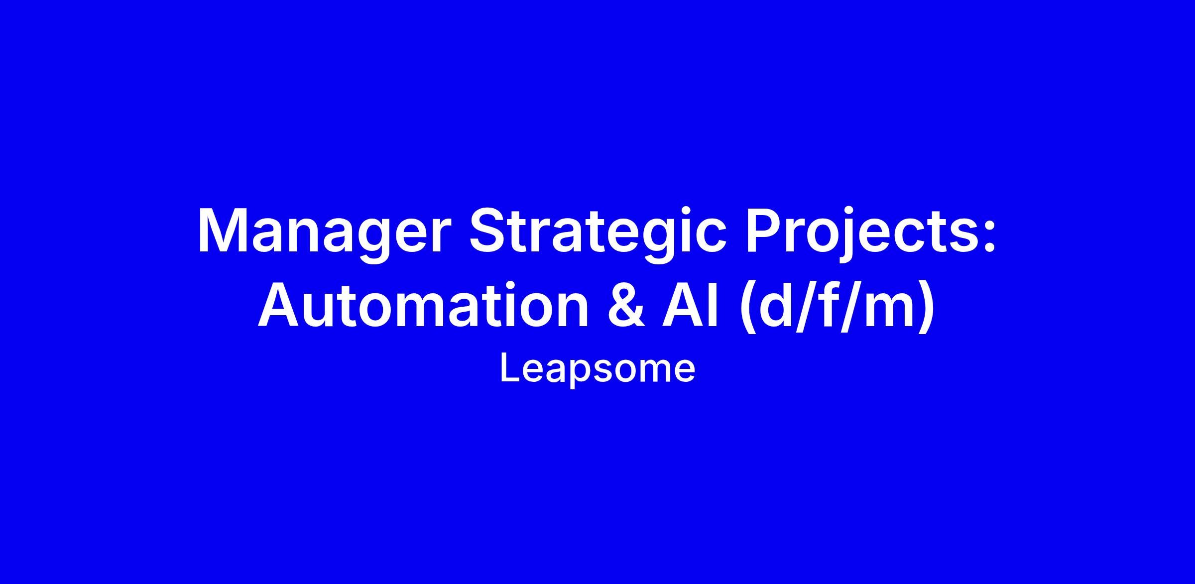 Join Leapsome as a Manager Strategic Projects: Automation & AI, a true generalist who bridges the gap between business strategy and technical implementation. You'll drive GTM initiatives while - in parallel - transforming how we work across Leapsome through automation and AI. This role requires both business acumen & structure to help teams with their complex problems and technical expertise to build actual solutions. You'll be at the forefront of our efficiency revolution, working across teams to identify opportunities, implement solutions, and measure tangible business impact.