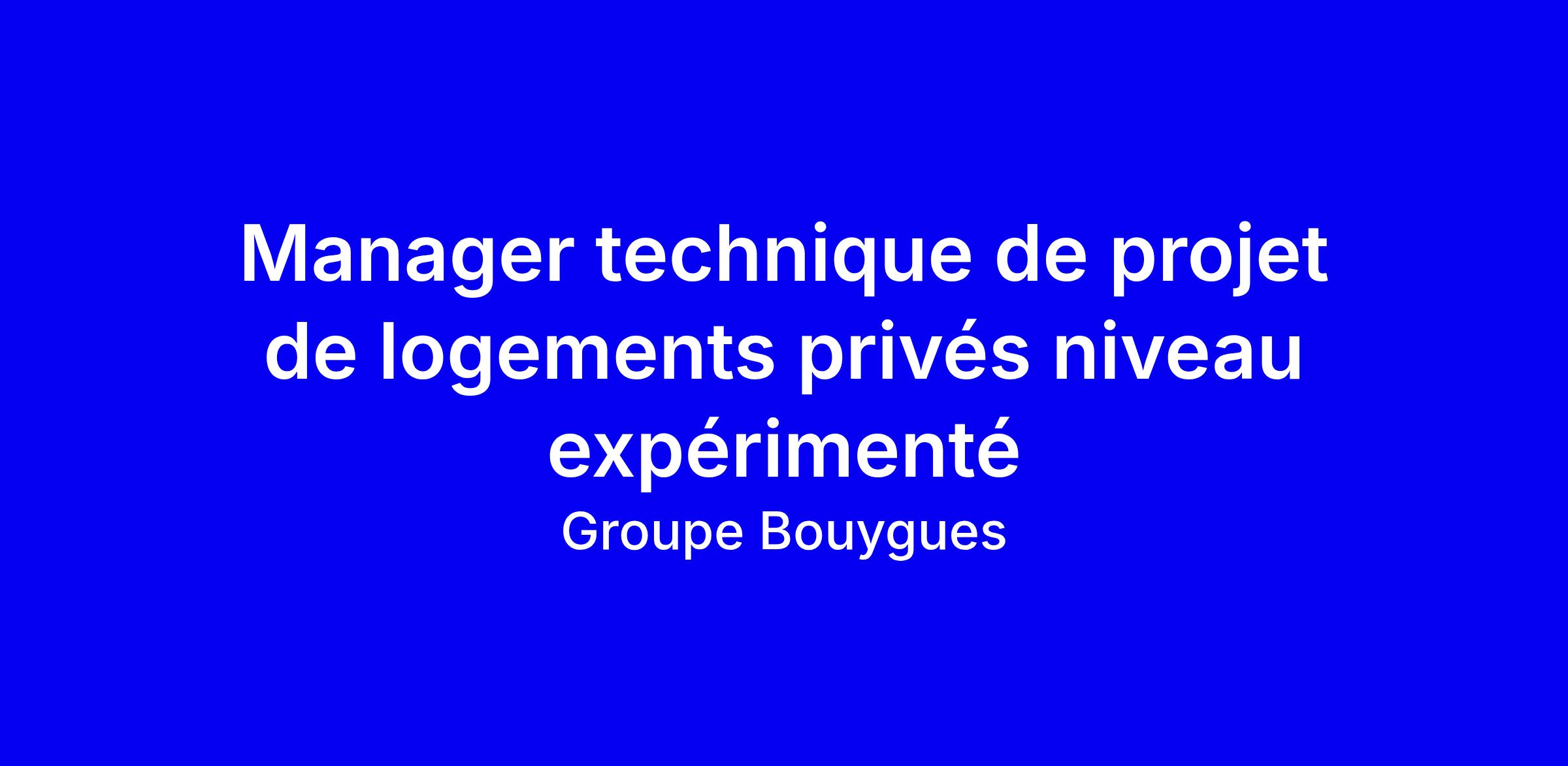 Manager technique de projet de logements privés niveau expérimenté - F/H