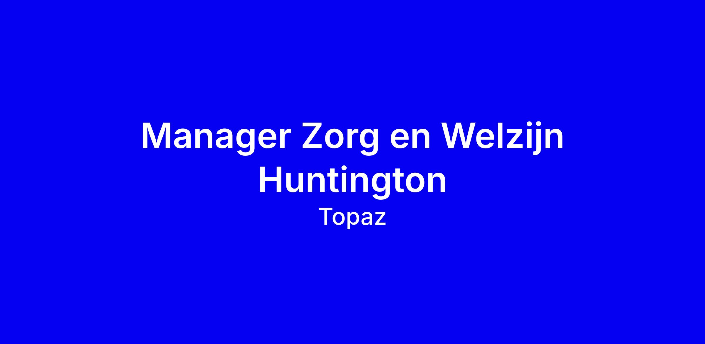 Durf jij los te laten en anders vast te houden? Bij Topaz Overduin hebben wij een mooie rol voor jou als Manager Zorg (en Welzijn) Huntington!