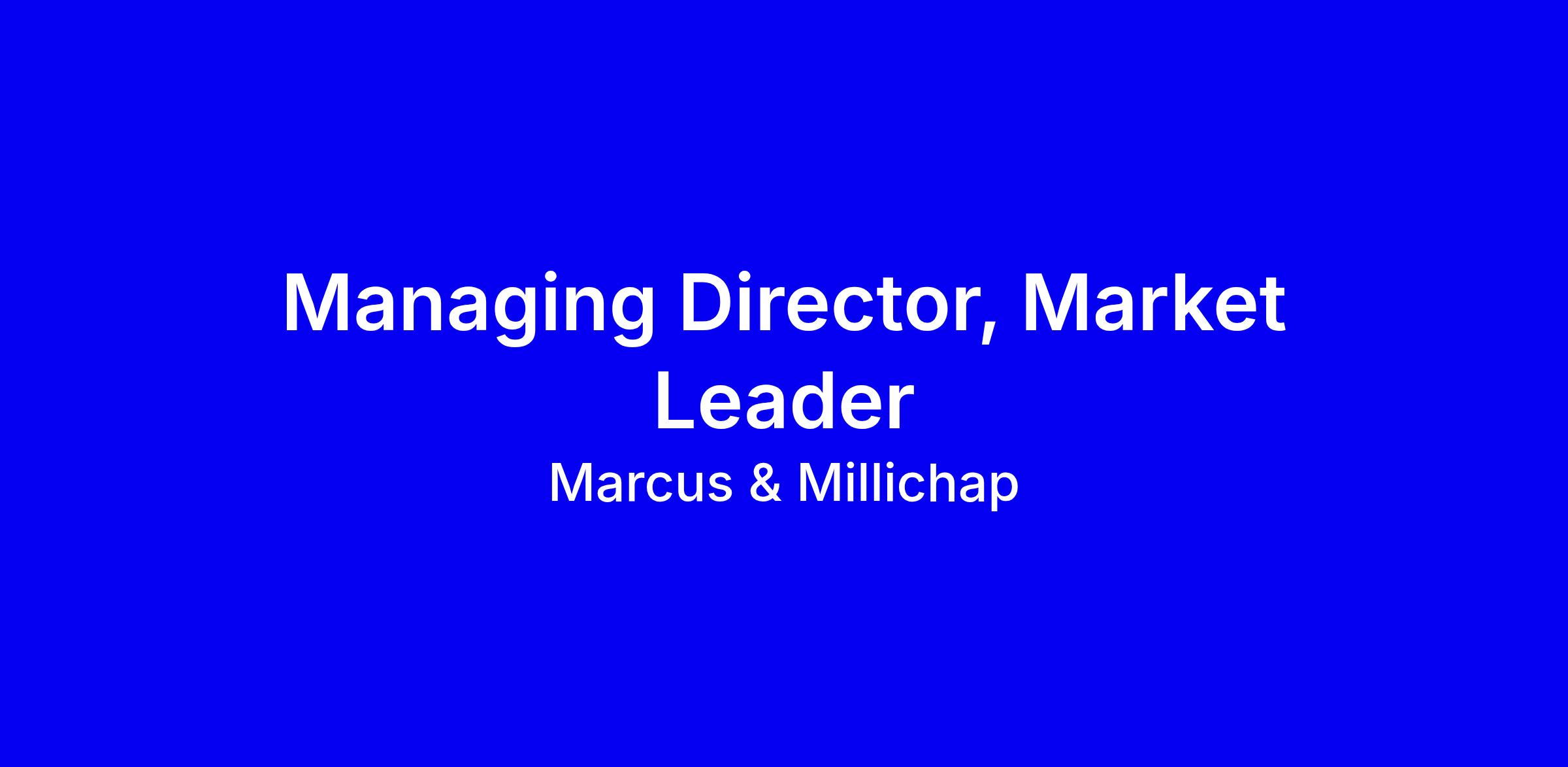 Why Marcus & MillichapMarcus & Millichap is a company built on developing leaders. We offer a unique platform where entrepreneurial professionals can thrive in a culture of trust, innovation, and excellence. Our network, resources, and industry-leading tools provide unparalleled support for business growth and leadership impact.
