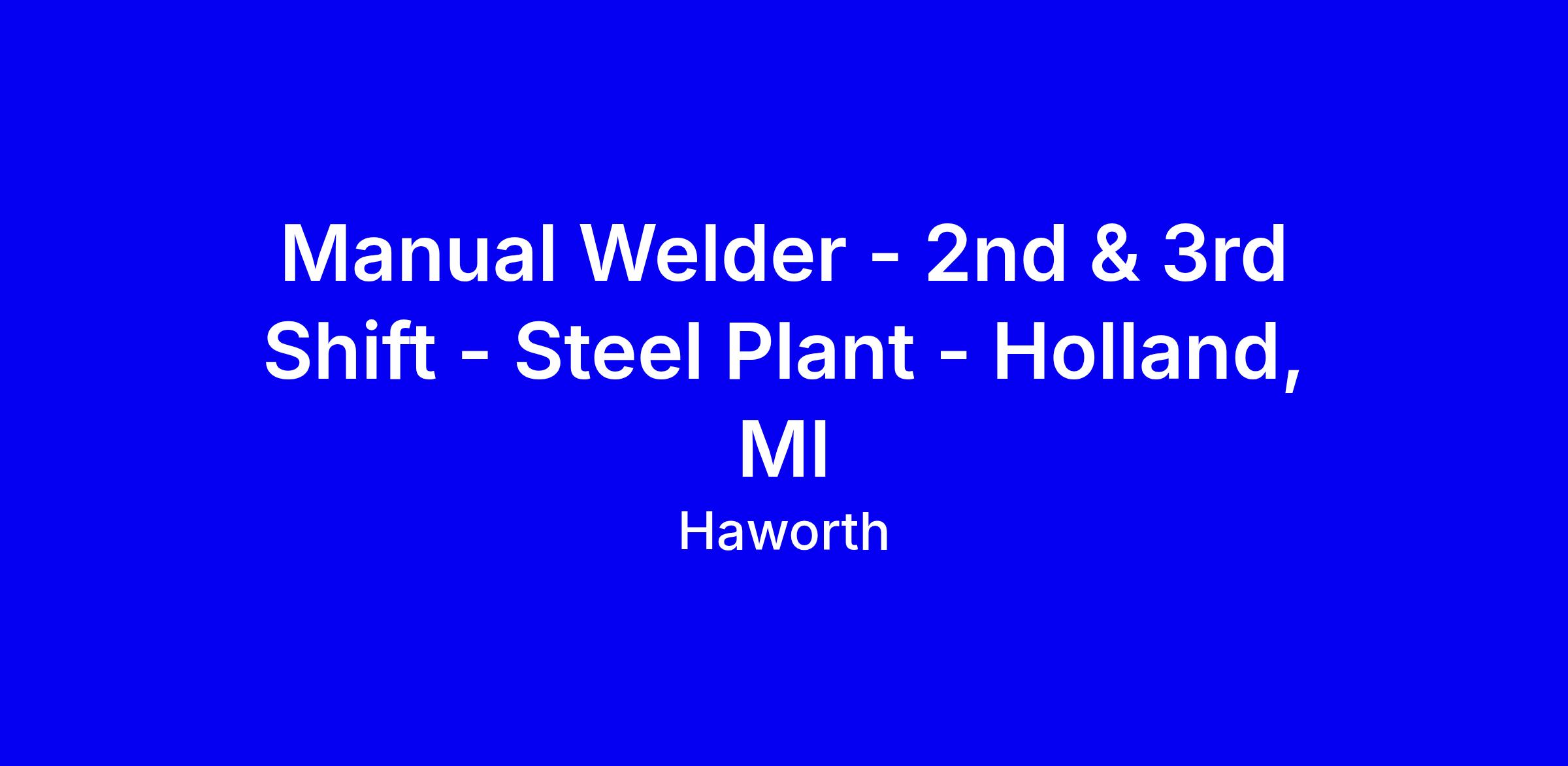 Haworth is hiring a Manual Welder for 2nd and 3rd shifts in Holland, MI, a full-time onsite role focused on setting up and welding high quality components. This position sits in a diverse culture with stability and growth. Benefits from day one include medical, 401(k) with match, PTO, and overtime. Key requirements: at least two years of manufacturing experience, MIG welding, ability to obtain a powered industrial truck certification, lift up to 50 pounds, and work rights in the United States without sponsorship; willingness to work weekends or holidays as needed. Preferred: blueprint reading, computerized welding equipment, and precise measurement. To apply, tailor your resume to MIG welding, blueprints, and safety, and highlight flexibility.