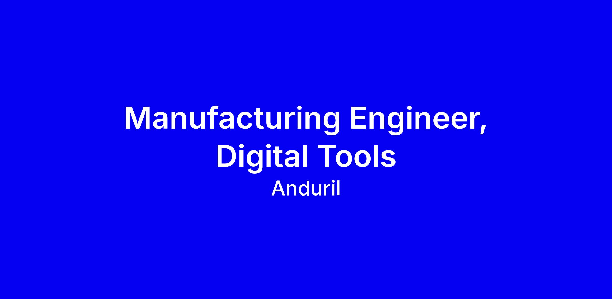 Anduril’s Manufacturing Digital Tools & Procedures is seeking a Digital Tools Manufacturing Engineer to join our team. The Manufacturing Digital Tools and Procedures team plays a pivotal role in optimizing manufacturing operations through the implementation and management of procedures and advanced digital solutions. The team ensures that manufacturing processes are efficient, scalable, and integrated with the latest industry standards.