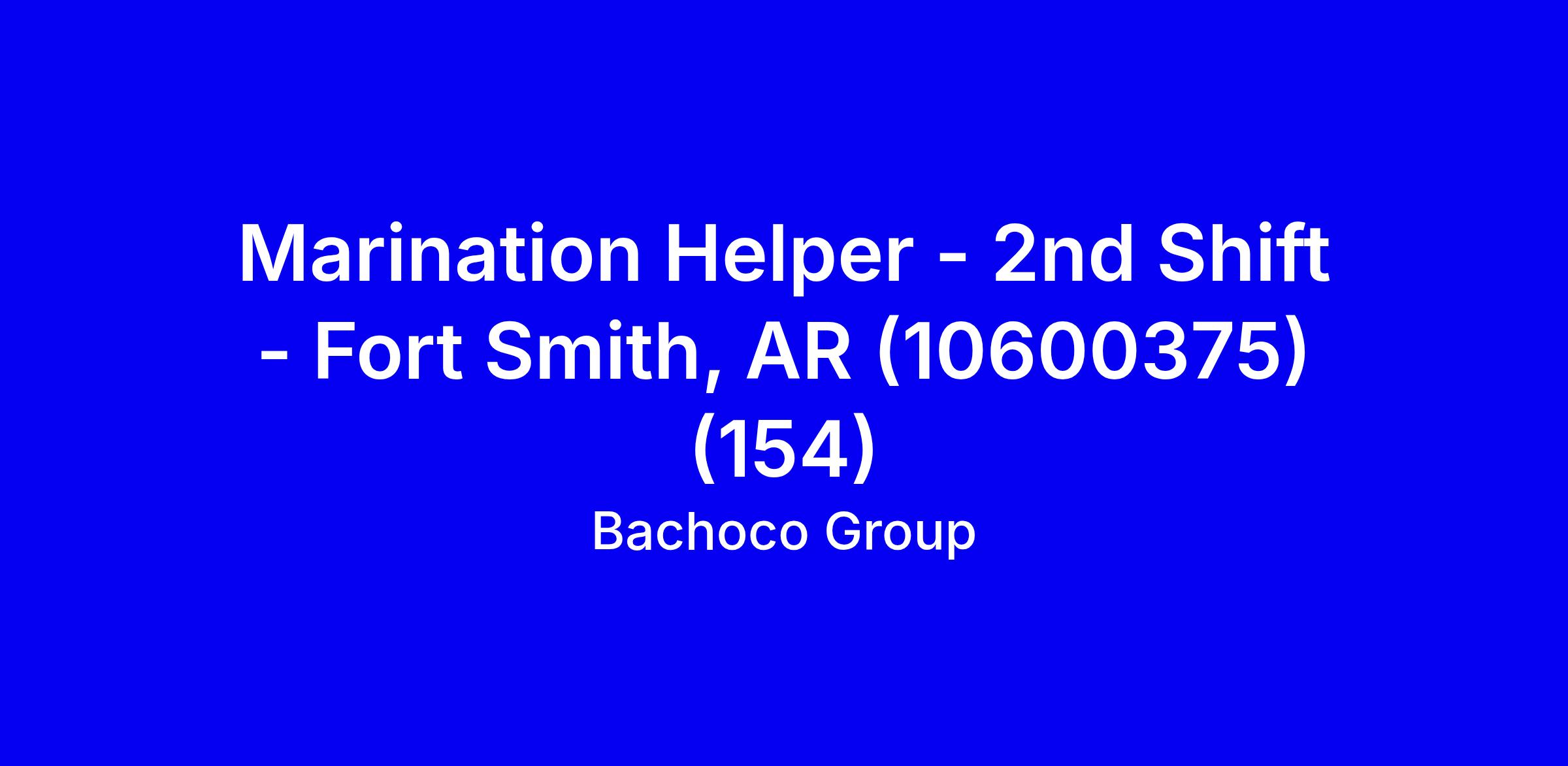 Bachoco Group seeks a 2nd Shift Marination Helper in Fort Smith, a heavy lifting role in the Further Processing department. The 4:00 pm to end of shift pays $16.25 per hour plus a $1 per hour weekly attendance incentive, with raises at 30 and 90 days. Duties include setting up the line, marinating product, dumping totes into tanks, and moving product with a jack, while lifting up to 50 pounds and keeping a safe, sanitary area. Benefits include 401K, medical, dental, vision, 6 holidays, vacation after 90 days, and 2 personal days. Apply via Bachoco USA, tailoring your resume to highlight reliability and any production or marination experience. Equal opportunity employer.