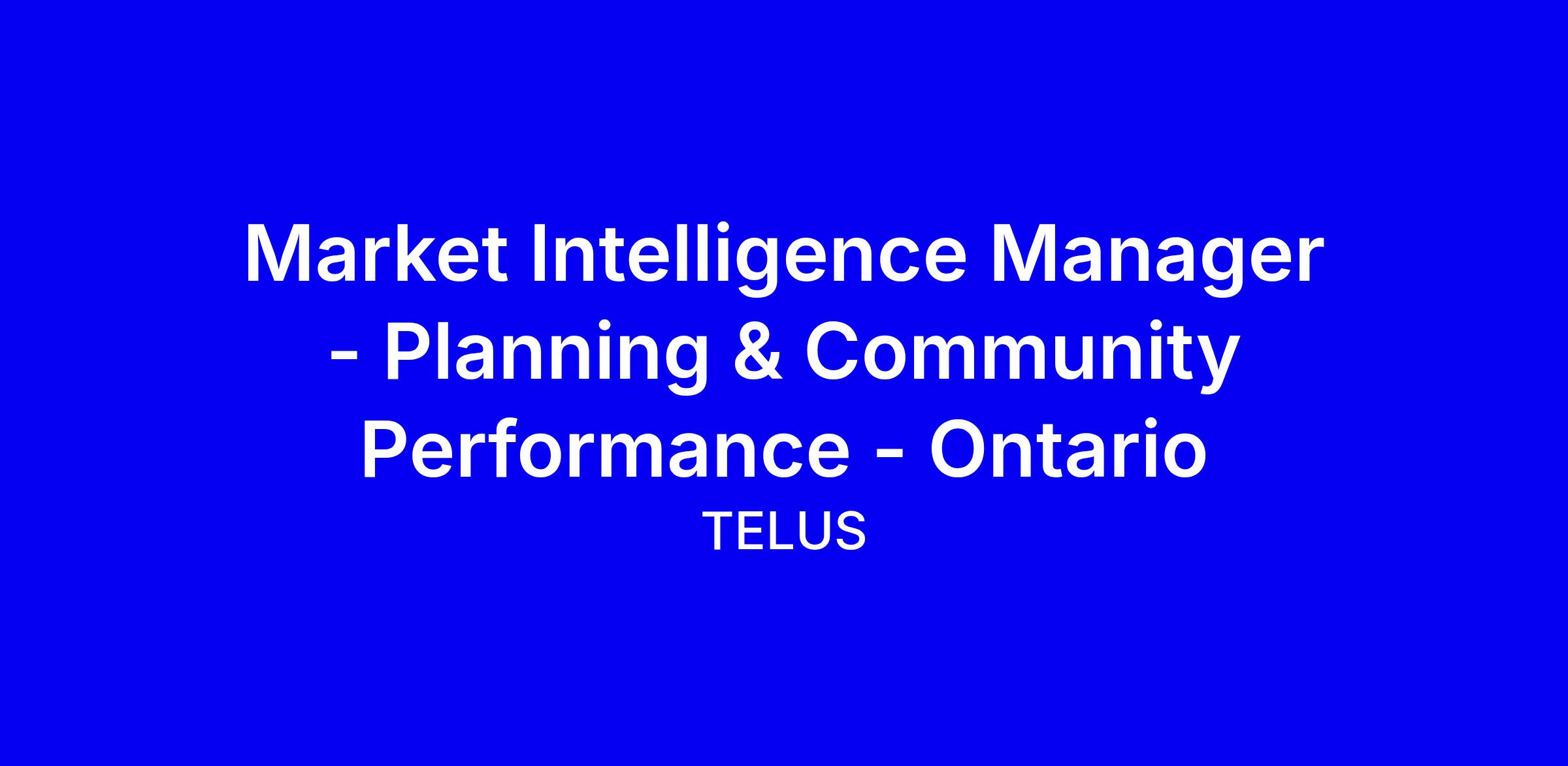 TELUS is hiring a Market Intelligence Manager to build performance reports and dashboards, support sales teams, and guide planning and community initiatives from our Toronto on-site office. You will create and maintain community dashboards, calculate ROI on events, support annual and quarterly planning with analytics, and lead advanced reporting for sales with Tableau or Power BI, SQL, and Google Sheets. The role requires 4-6 years in BI or analytics, strong data visualization, CRM experience, and clear executive-ready presentations. To apply, tailor your resume to quantify impact, share a portfolio or links to dashboards, and highlight collaboration, accuracy, and a growth mindset, with bilingual English French as a plus.