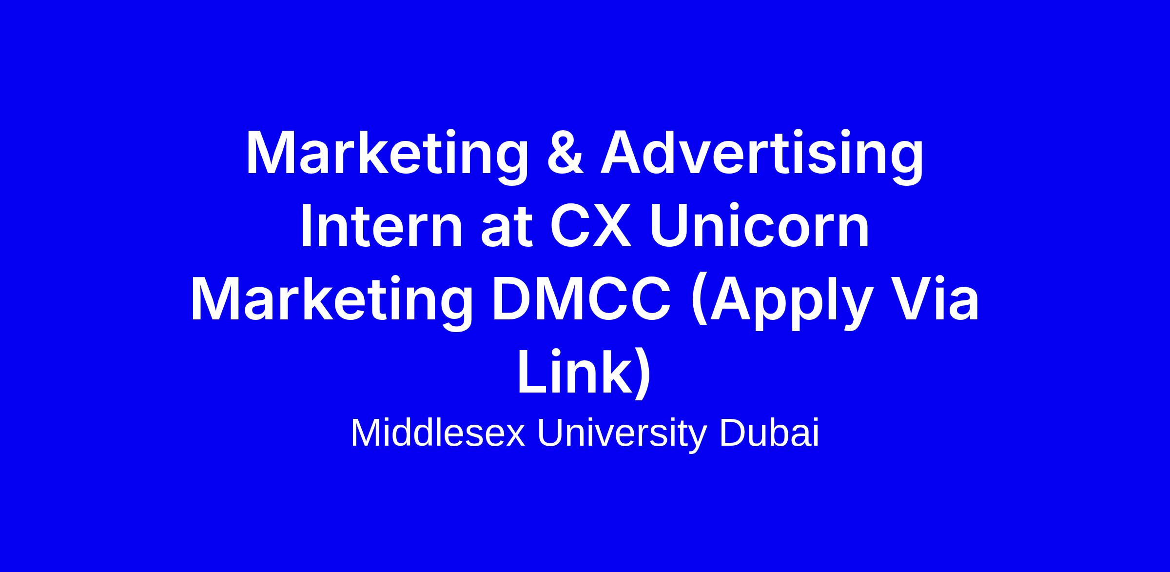 CX Unicorn Marketing DMCC is offering a Marketing & Advertising Intern position through Middlesex University Dubai for an onsite internship in Dubai. The role targets learners eager to gain hands on exposure to marketing communications and campaign support. A key instruction in the posting is that only applicants who apply through the provided link will be considered, not via the Apply Now button. To maximize your chances, submit a tailored resume and a concise note via that form, and highlight relevant coursework or student projects along with demonstrated willingness to learn and collaborate. Also confirm your availability for the internship duration and your ability to work onsite in Dubai.