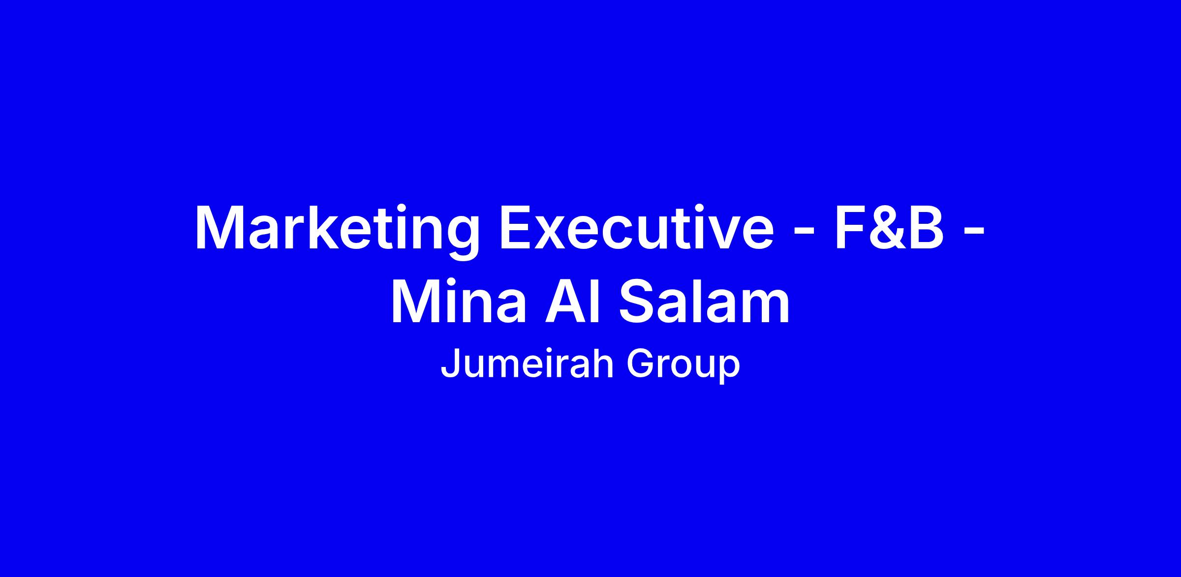 An exciting opportunity has arisen for a Marketing Executive to join Jumeirah Mina Al Salam