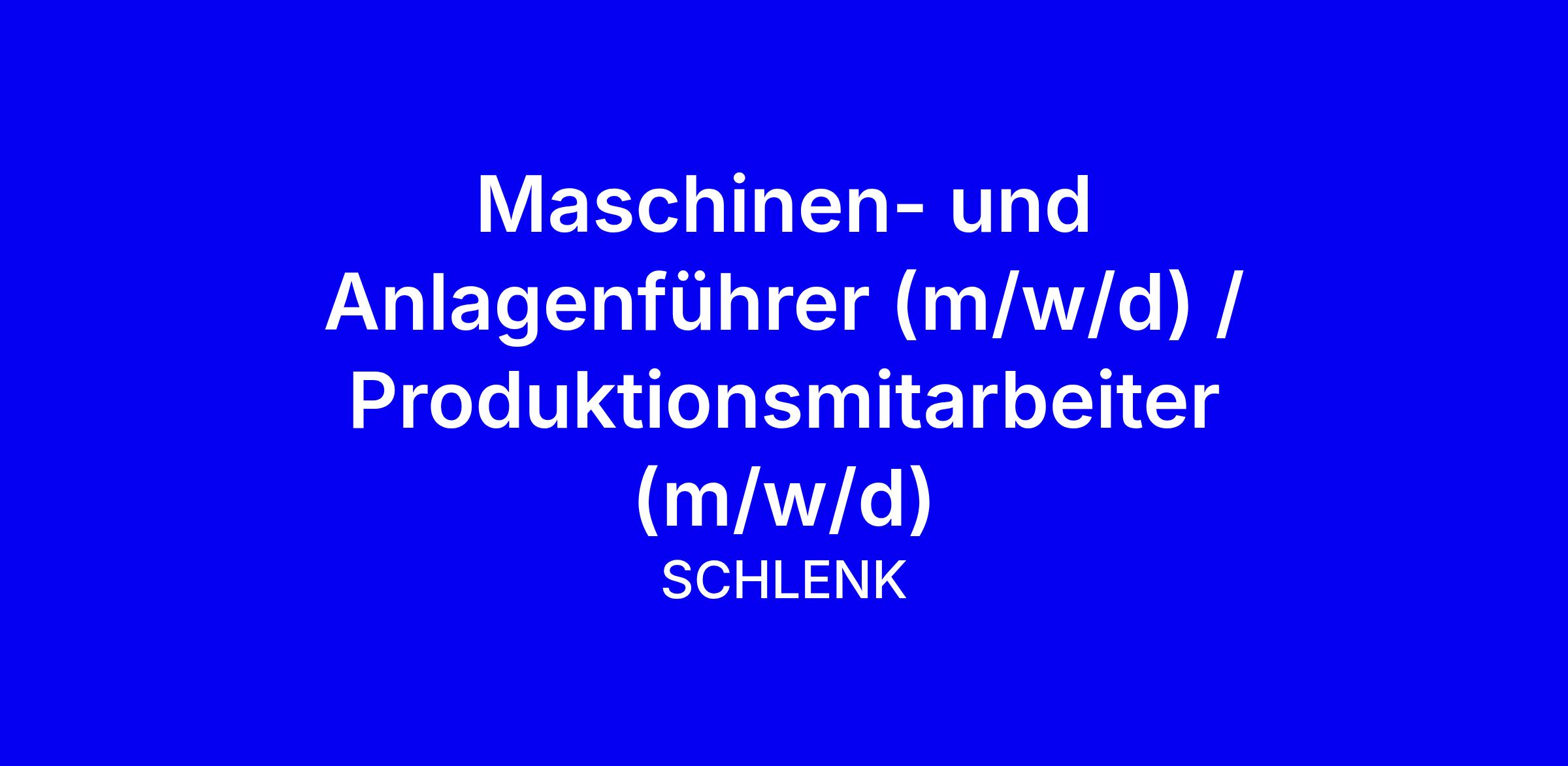 Maschinen- und Anlagenführer (m/w/d) / Produktionsmitarbeiter (m/w/d)