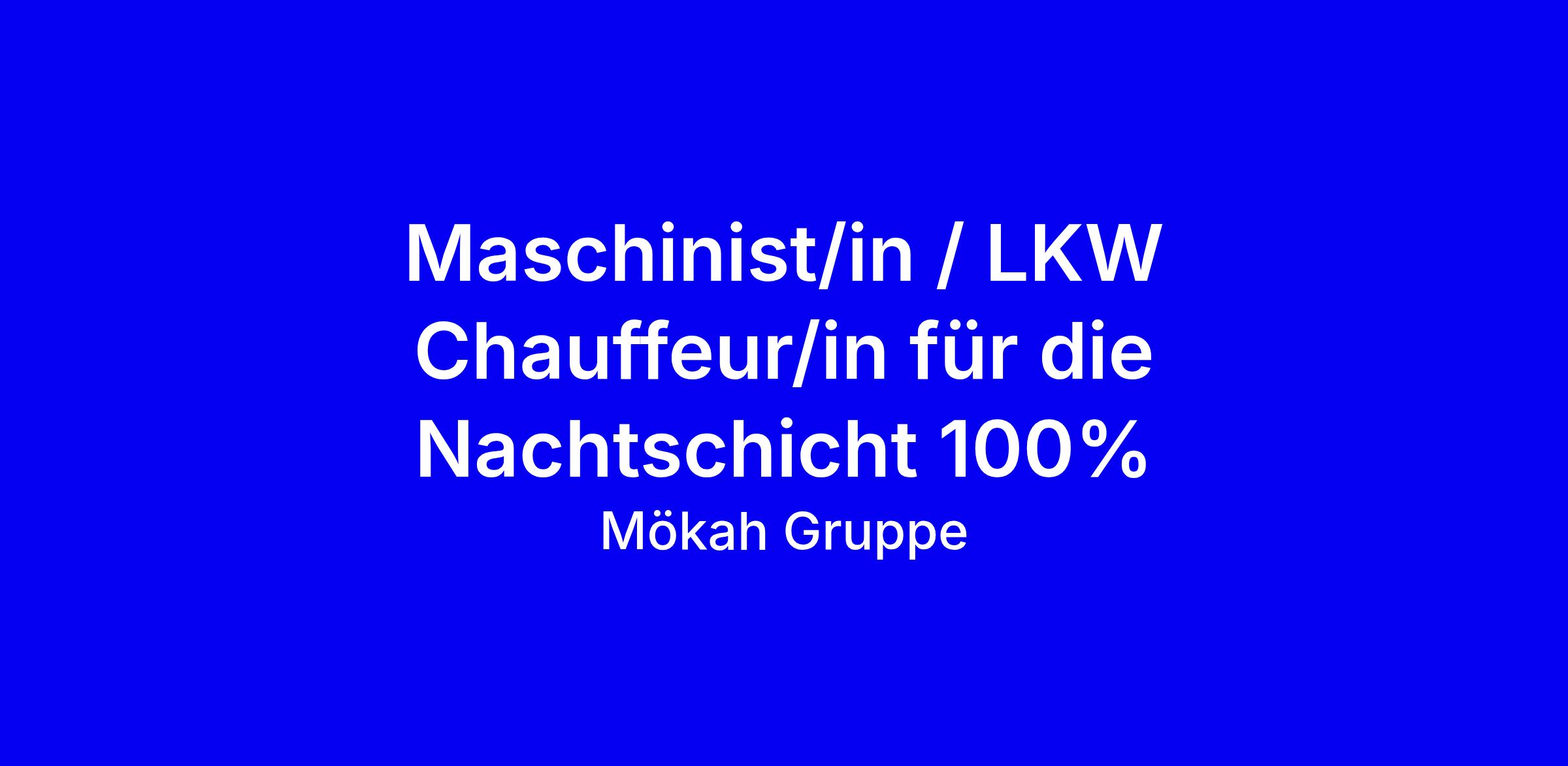 Die Mökah Gruppe sucht eine/n Maschinist/in bzw. LKW Chauffeur/in für die Nachtschicht (ca. 20.00 bis 06.00 Uhr) in Zürich, Vollzeit, onsite, mit Führerschein Kat. C als zwingende Voraussetzung. Sie erledigen eigenständig Kundenaufträge, achten auf Sicherheits- und Qualitätsstandards und beraten vor Ort den Kunden, idealerweise SBB-Kunden. Wichtig sind Teamfähigkeit, Belastbarkeit, Zuverlässigkeit, Selbstständigkeit sowie flexible Einsatzbereitschaft und gute Deutschkenntnisse. Das Angebot umfasst eine abwechslungsreiche, verantwortungsvolle Tätigkeit in einem dynamischen Umfeld, Weiterbildungsmöglichkeiten und eine fundierte Einführung sowie offene Kommunikation. Bewerben Sie sich direkt über den Button 'Apply for this job', und heben Sie in Ihrem CV relevante Nachtarbeitserfahrung, Ihre Zuverlässigkeit und Ihre KundInnen-Kommunikation hervor.