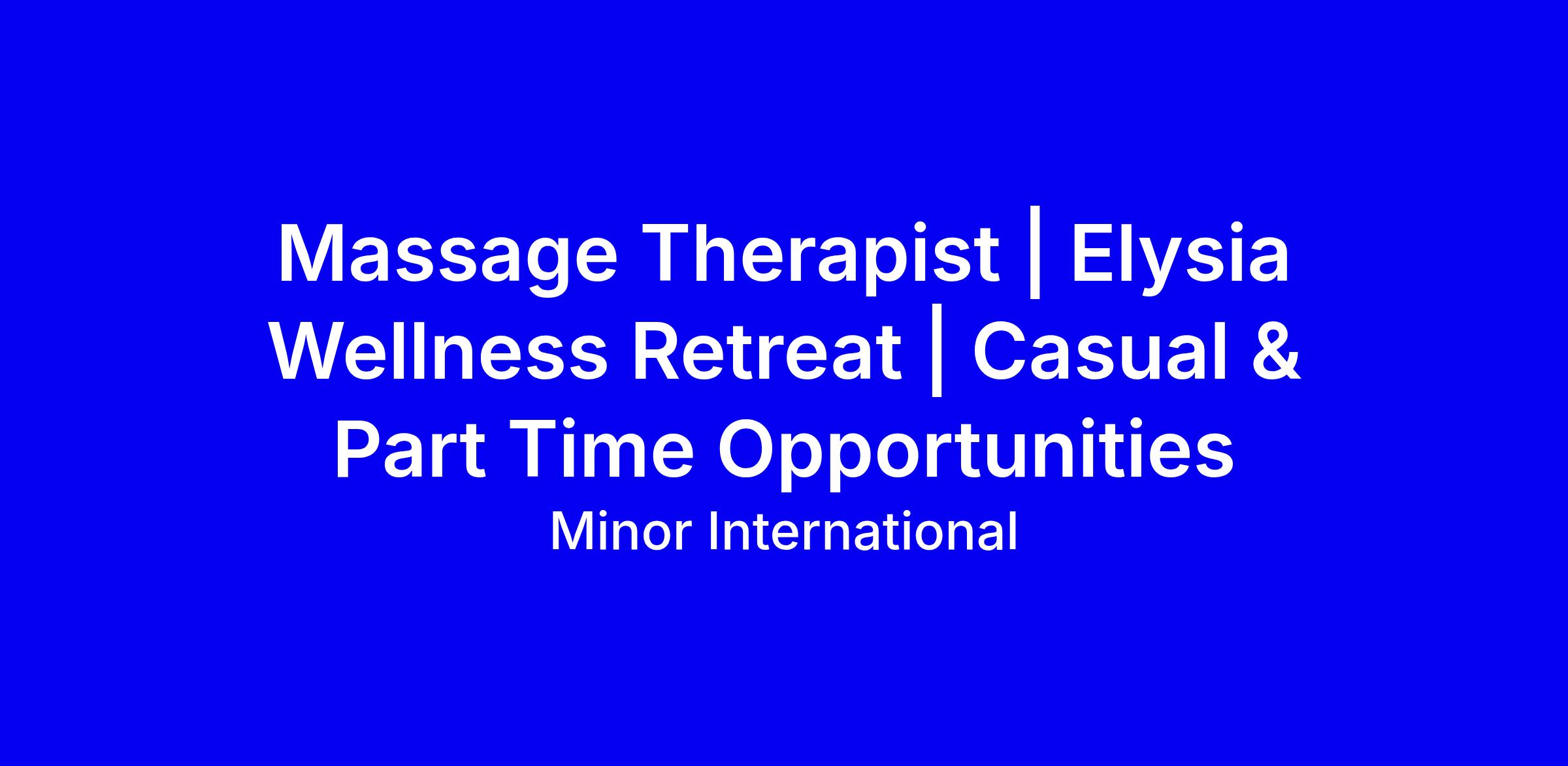 Minor Hotels is seeking a casual, part-time Massage Therapist for Elysia Wellness Retreat in Singleton to deliver high-quality, guest-centred treatments across multiple modalities including Remedial, Deep Tissue, Kahuna, Lymphatic Drainage, Gua Sha, Swedish, Hot Stone, Reflexology and Prenatal. Key qualifications: minimum Certificate IV in Massage (Diploma preferred), spa or resort experience a plus, excellent communication and guest-care skills, weekend availability and full Australian working rights. The role offers growth, hotel and global perks, wellness benefits and flexible scheduling in a supportive, wellness-driven culture. To apply, tailor your CV and cover letter to showcase your modality strengths, guest outcomes, and readiness to contribute to a collaborative team, and confirm eligibility.