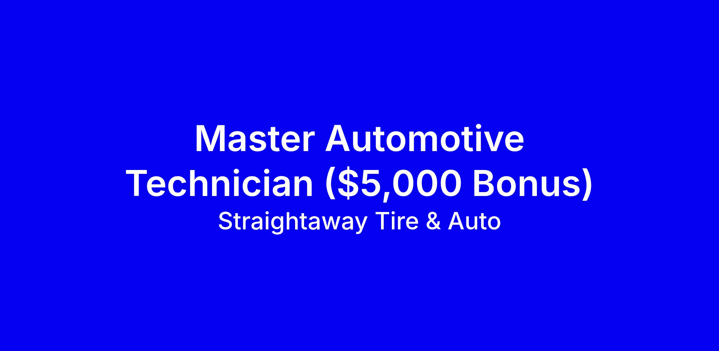 Straightaway Tire & Auto is seeking a Master Automotive Technician in Roseville with a $5,000 hiring bonus for qualified techs. This full-time, on-site role offers unlimited hours, no nights or weekends, and the potential to earn $120k+ for top performers, plus a stock option plan. Benefits include health, dental, vision, a 401(k) with match, paid time off, uniforms, tool insurance, ASE certification reimbursement, an Employee Assistance Program, and auto repair discounts in a modern shop with trusted service advisors. Requirements: 8+ years of electrical diagnostic experience and a positive, proactive attitude; tailor your resume to highlight electrical mastery. Apply today or call Will at 612-488-1724.