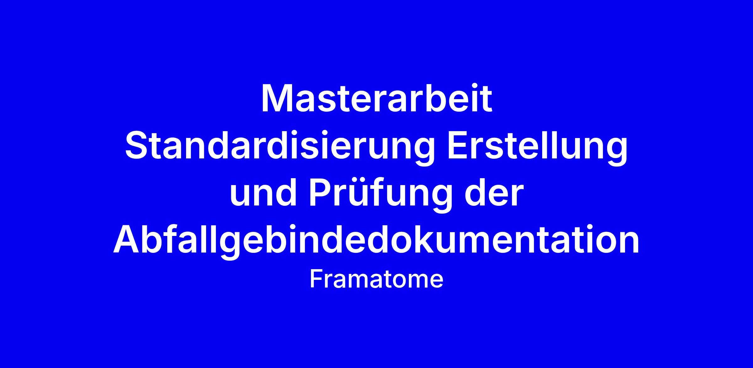 Wir bieten die Partnerschaft für das Verfassen einer Masterarbeit zum Thema Standardisierung Erstellung und Prüfung der Abfallgebindedokumentation an.