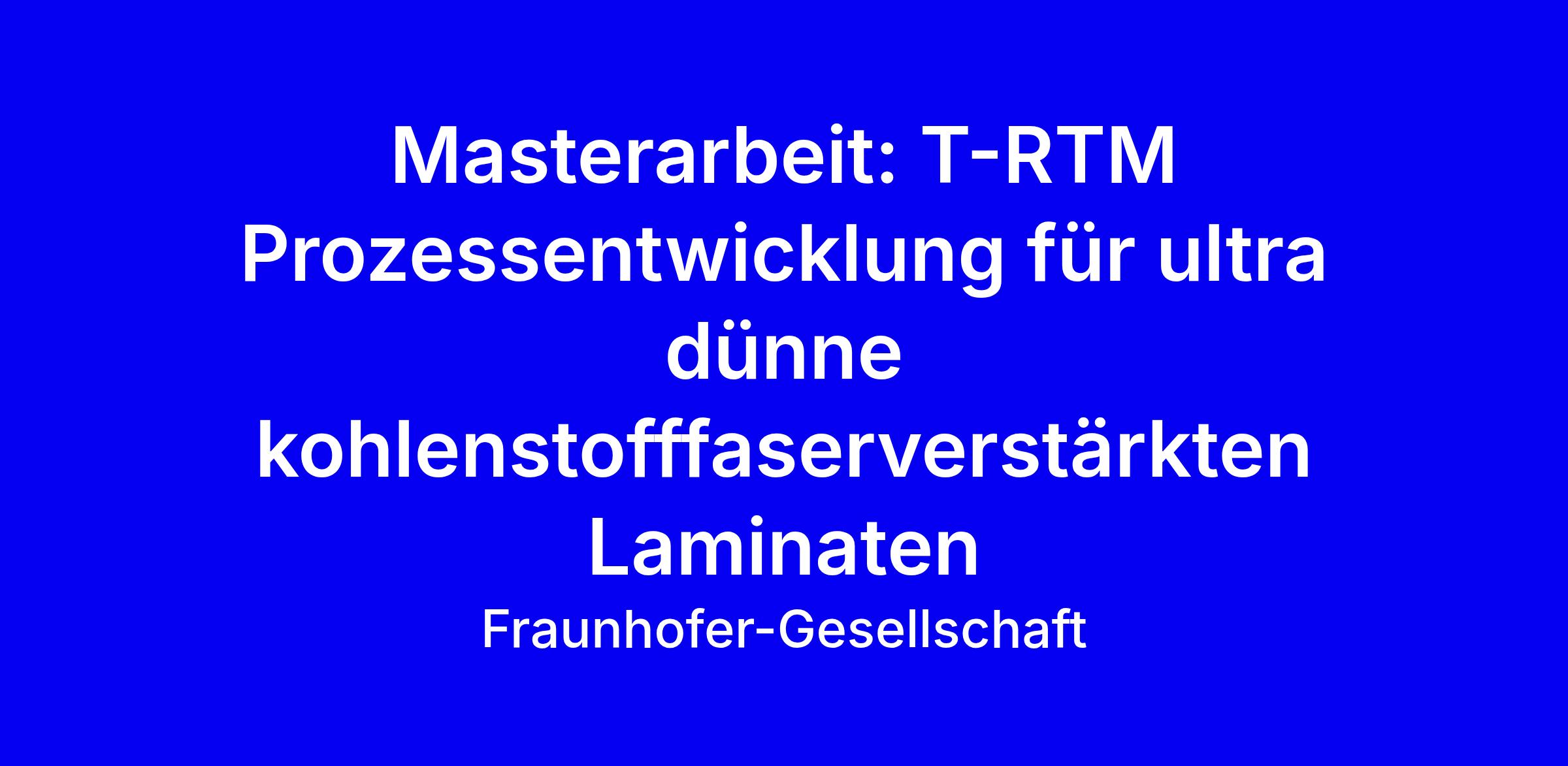 Fraunhofer ICT in Karlsruhe bietet eine Masterarbeit zur T-RTM Prozessentwicklung für ultradünne kohlenstofffaserverstärkte Laminates an. Du untersuchst experimentell Einflussgrößen bis 150 µm Dicke, analysierst Prozesse und leitest ein optimales Prozessfenster ab, unterstützt durch geeignete statistische Methoden, in enger Zusammenarbeit mit der betreuenden Wissenschaftlerin und mit Fokus auf Temperatur, Druck und Materialgrößen. Voraussetzungen: Masterstudium Kunststofftechnik, Maschinenbau, Werkstoffwissenschaften, Verfahrenstechnik oder Vergleichbares; Interesse an Werkstoffforschung, Leichtbau und experimenteller Arbeit; analytisches Denken, Motivation, selbstständige Arbeitsweise; Deutsch oder Englisch fließend. Wir bieten ein anspruchsvolles, internationales Umfeld, flexible Arbeitszeiten bis 20 Stunden pro Woche, Parkplätze, Kantine und Bibliothek. Tipps zur Bewerbung: fokussiere deine relevanten Versuchs- und Statistikkenntnisse, liefere konkrete Beispiele aus der Praxis und zeige deine Verfügbarkeit; Start März/April, Kennziffer 83089. Kontakt: Hannah Decker, Laura Kühn.