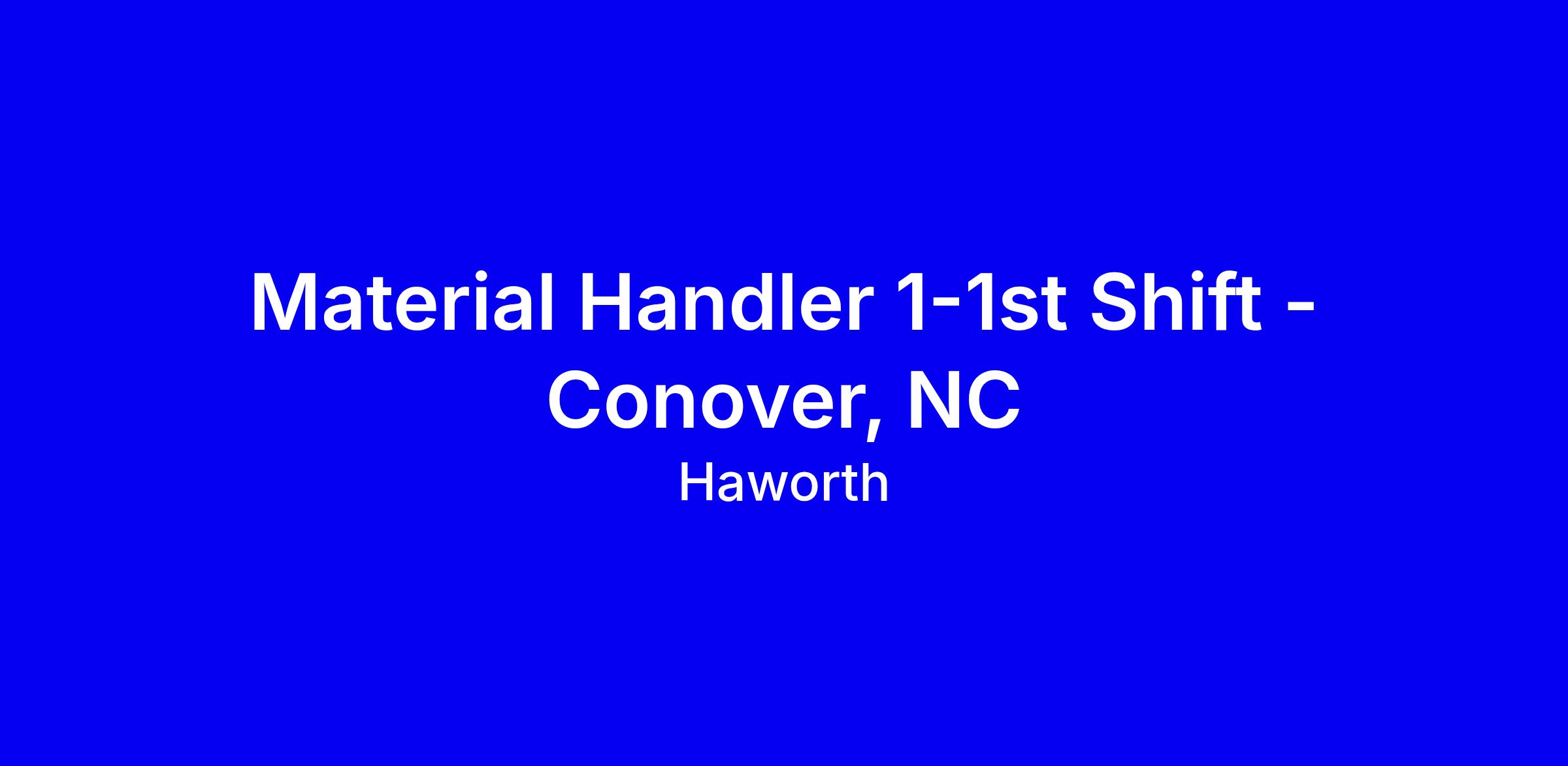 We are currently looking for a Material Handler 1 to join our team in Conover.