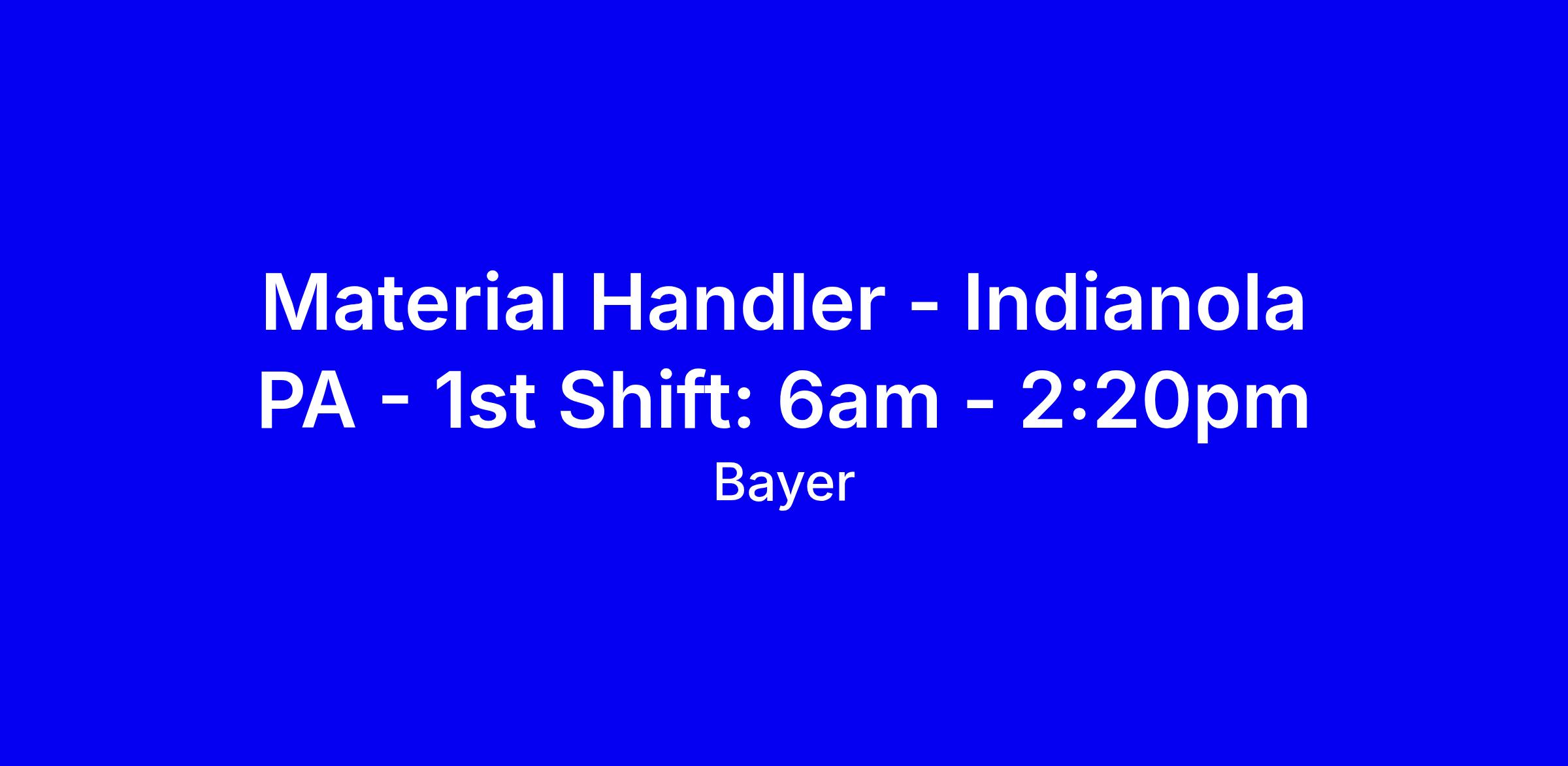 Material Handler - Indianola PA - 1st Shift: 6am - 2:20pm