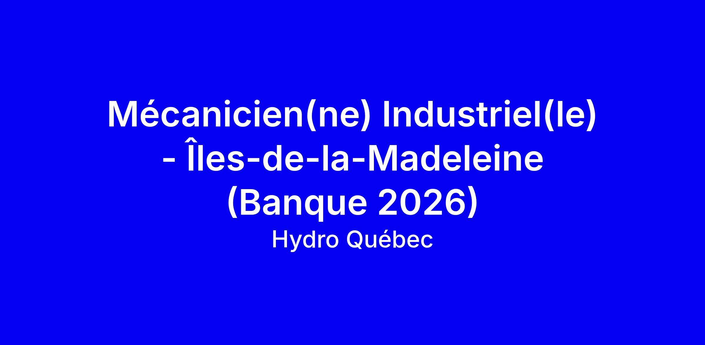 Hydro-Québec propose un poste temporaire de Mécanicien(ne) Industriel(le) sur les Îles-de-la-Madeleine, à 37 heures par semaine sur 4 jours, pour 12 mois. Vous dépannerez et maintiendrez des génératrices diesel et leurs systèmes, en réalisant essais, mises en route et réparations, et renforcerez la sécurité et la fiabilité en milieu maritime. Les diplômes privilégiés sont DEP en mécanique de véhicules lourds routiers, DEP en mécanique d engins de chantier ou DEC techniques de génie mécanique de marine, ou 5 ans d’expérience dans une centrale diesel. Pour postuler, joignez CV détaillé et diplômes, mettez en avant vos expériences diesel et votre esprit d’équipe, et précisez votre mobilité aérienne, terrestre et maritime ainsi que votre capacité à travailler en hauteur et en espaces clos. Des vérifications de fiabilité seront effectuées selon HQ-SC-N-1001.