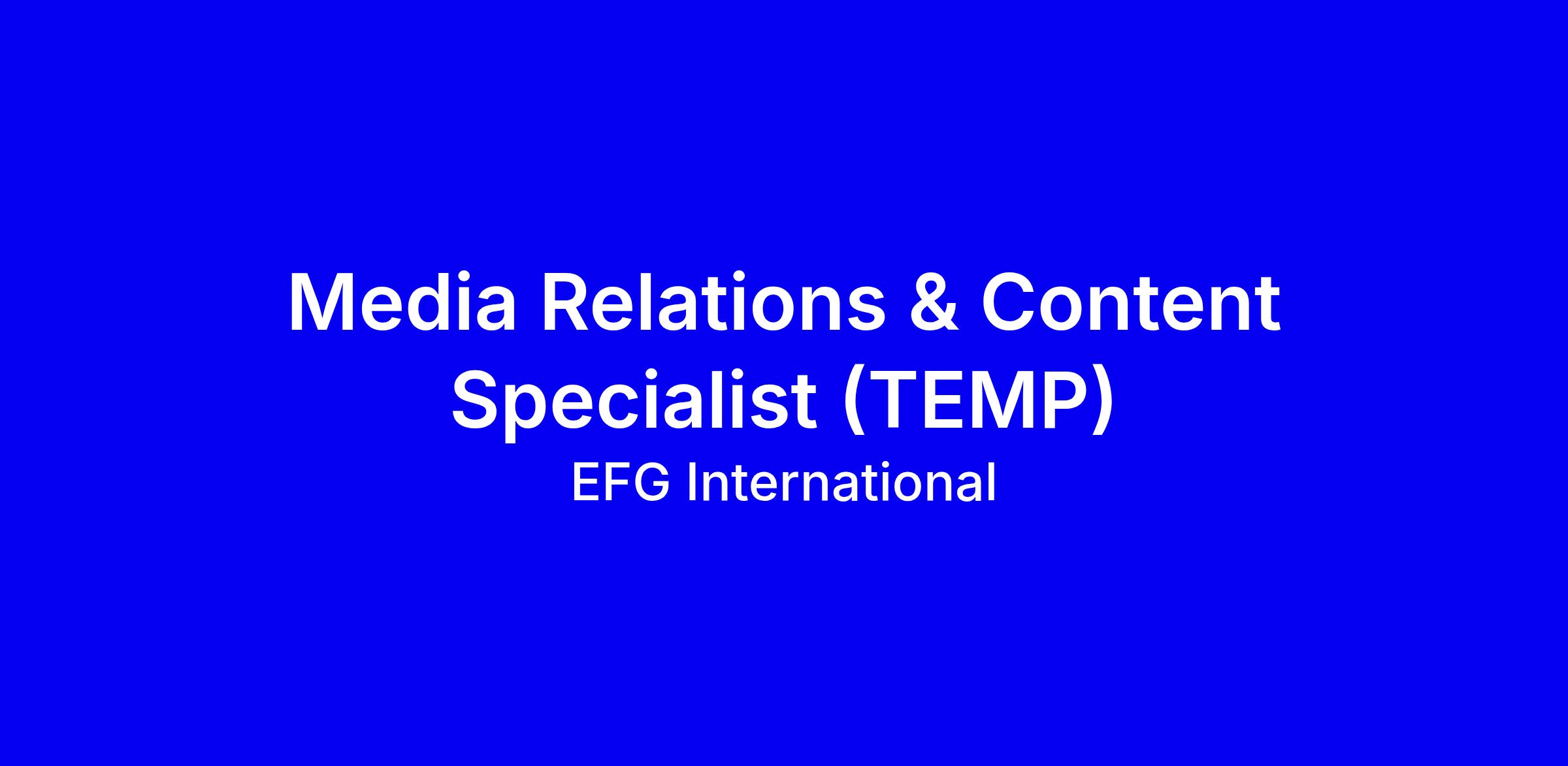 EFG International is hiring a TEMP Media Relations and Content Specialist in Zurich to drive earned media, craft media releases, handle inquiries, advise private banking clients on media issues, and manage daily monitoring and urgent issue reporting. The role also runs media publishing across intranet, website, and social channels with IT and Digital Marketing support, while leading multi-channel content production focused on investment expertise, thought leadership, ESG and HR. It requires proven finance industry experience, excellent UK English writing, German a strong plus, and the ability to work under short deadlines, manage projects, and own outcomes. Apply with concrete media wins, CMS/web publishing examples, and show collaboration with digital teams, plus compliance awareness.