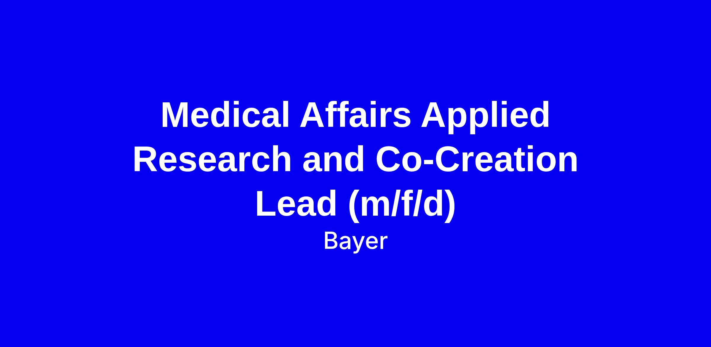 Medical Affairs Applied Research and Co-Creation Lead (m/f/d)